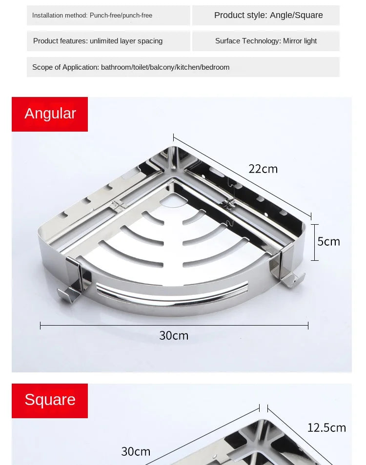 1/2 Schichten Eck-Duschregal für Badezimmer, Shampoo, Duschregal, Halter aus Edelstahl 304, stanzfrei, Küchenstativ, Eckständer