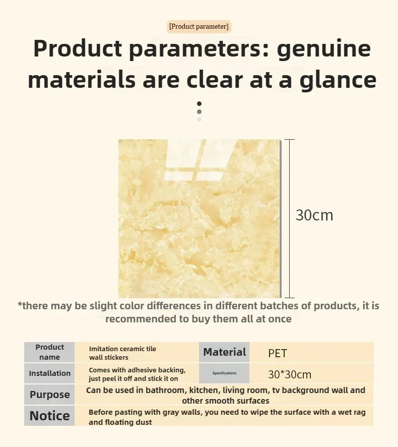 10/20/40PCS 30x30cm Self Adhesive Wallpaper Waterproof Tile Stickers FloorSticker for Kitchen Bathroom Ins Style Home Decor