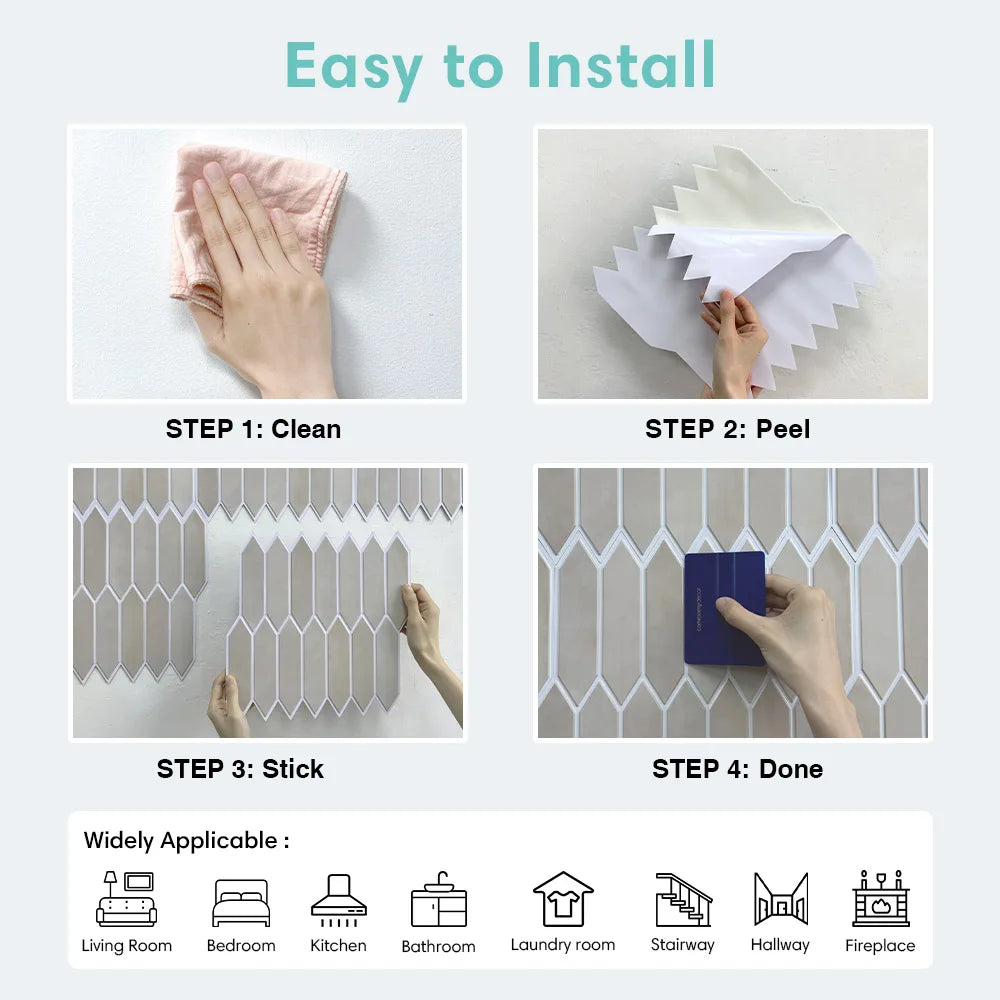 10 Pcs 3D Wall Panels, Peel and Stick Backsplash Tiles, Long Hexagon 3D Decorative Tiles for Interior Decor 30 X 30cm