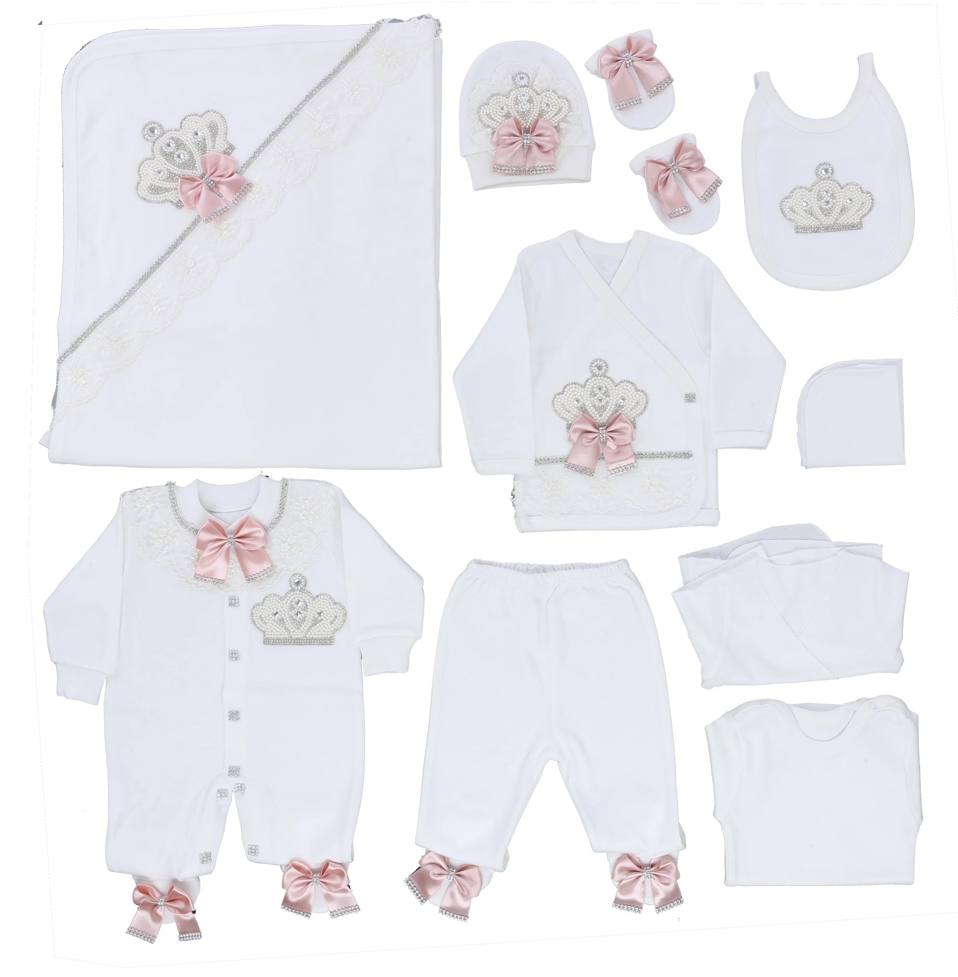 10-teiliges blaues 100 % Baumwollgewebe, gestrickt, Großhandel, individuell gestaltet, Neugeborene, neues Design, Winterkleidung, Kleidung, Luxus-Baby-Strampler-Set