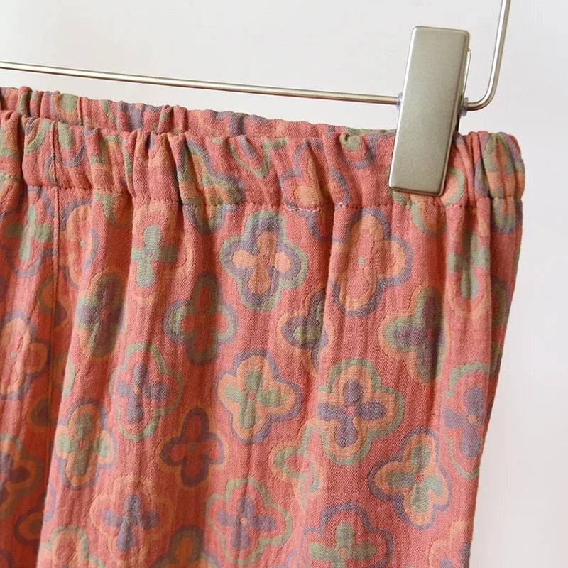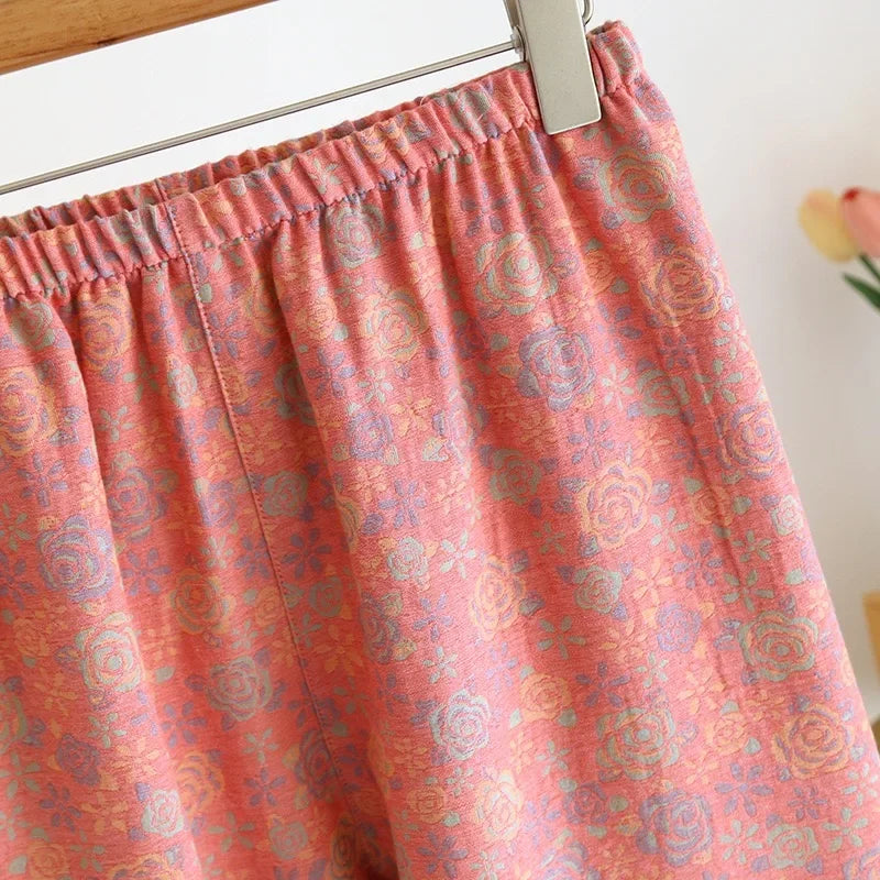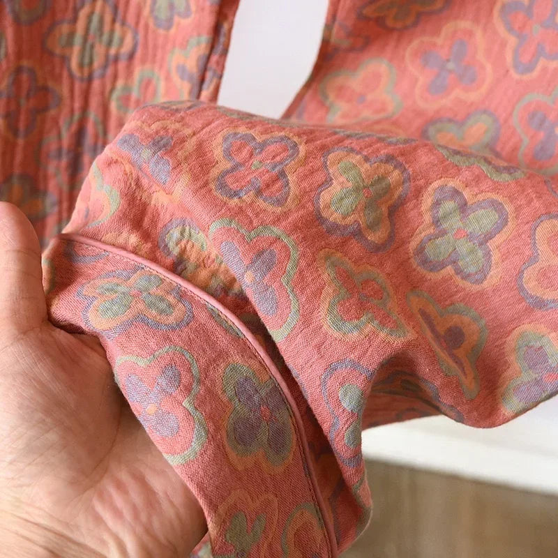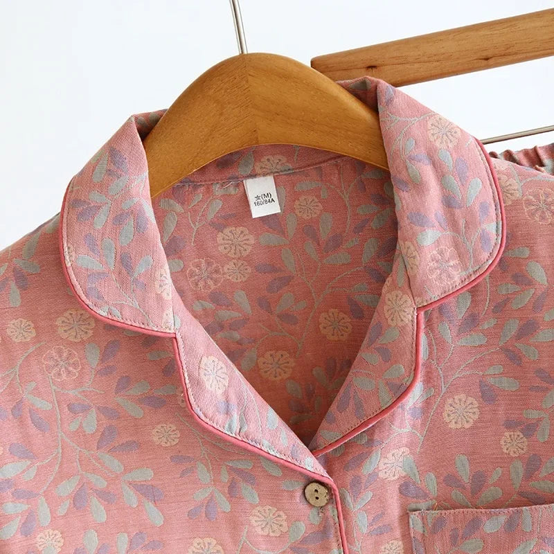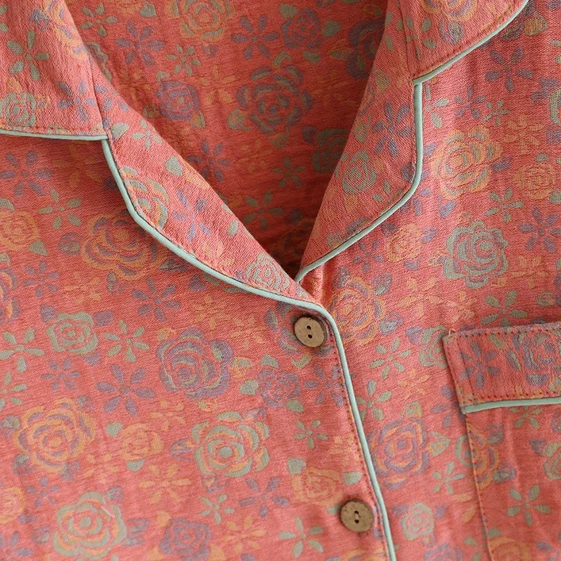 100% Cotton Crepe Homeclothes 2023 Autumn/Winter Women's Pajamas Suit Long-Sleeved Trousers 2-piece Yarn-Dyed Jacquard Pajamas