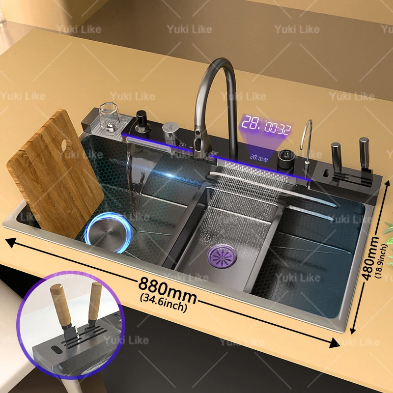 100 x 50 cm Edelstahl-Wasserfall-Küchenspüle, extra große Einzelschlitz-Digitalanzeige, multifunktionale Geschirrspülbecken