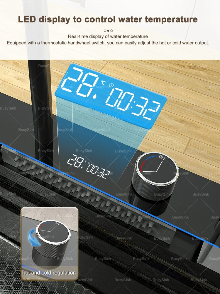 100x50cm Waterfall Kitchen Sink Stainless Steel Extra Large Single Bowl Digital Display Multifunctional Dishwashing Sinks