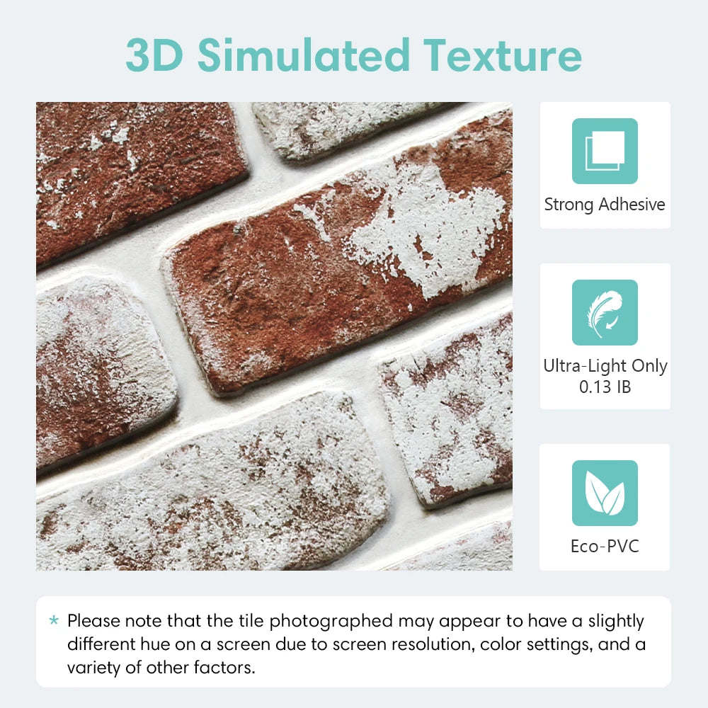 10pcs 3D Brick Wall Stickers Self-adhesive Faux Brick Wall Panels, Matt, Waterproof, 30 x 30cm, Living Room Bedroom Wall Decor