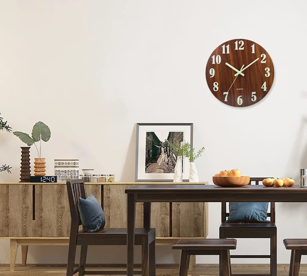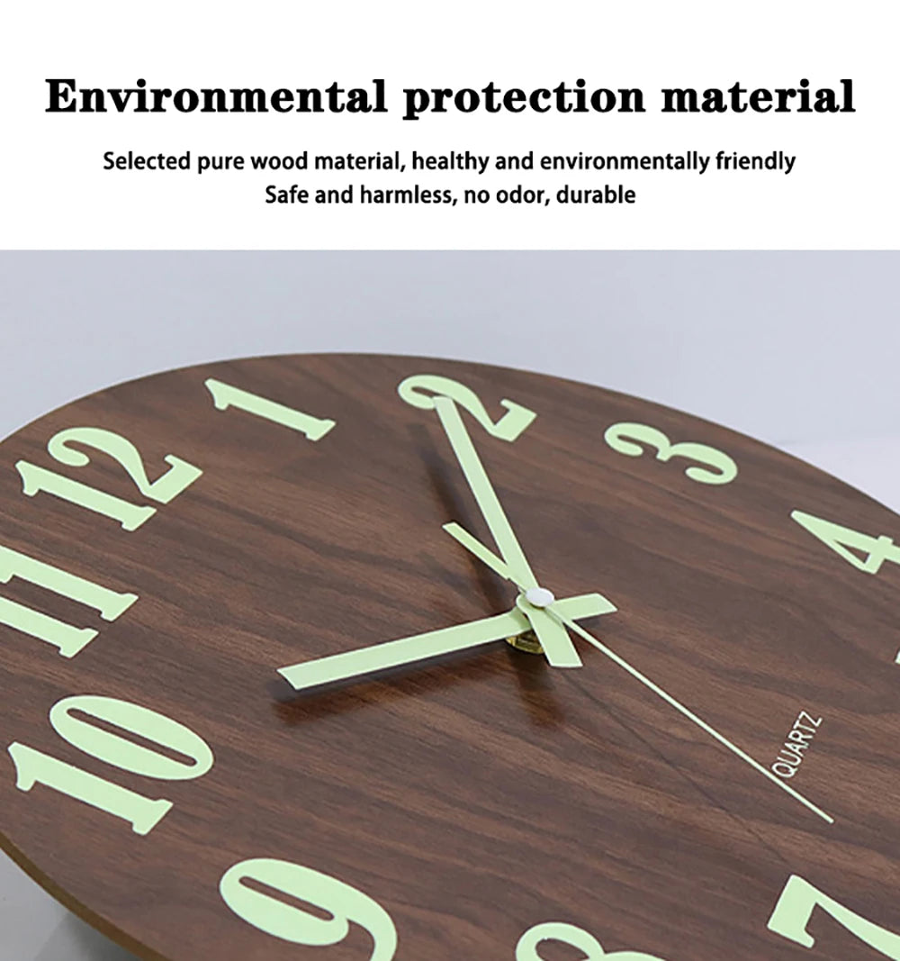 12-Zoll-Leuchtwanduhr aus Holz, geräuschloses Licht in dunkler Nacht, nordische Mode-Wanduhr, nicht tickende Uhr mit Nachtlicht