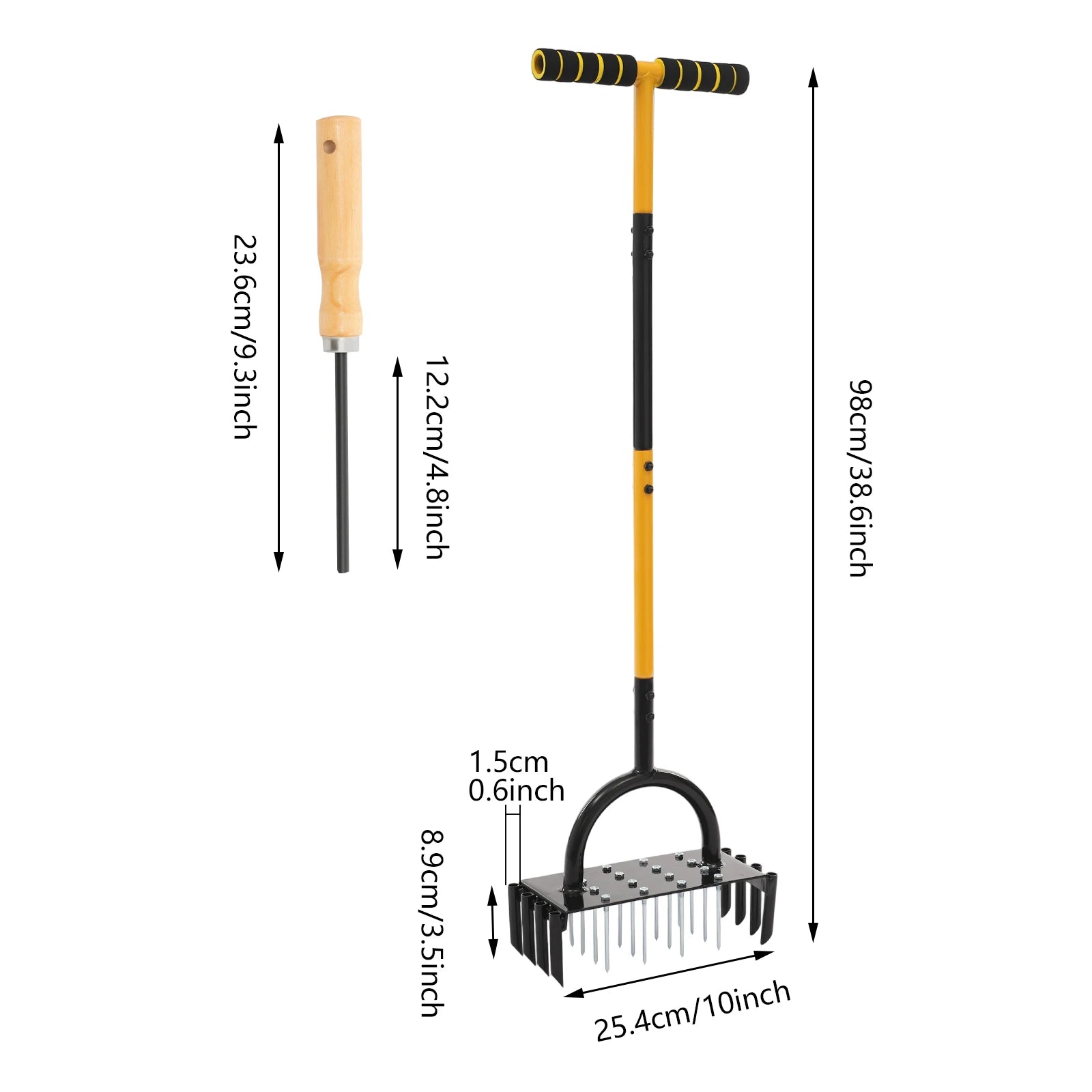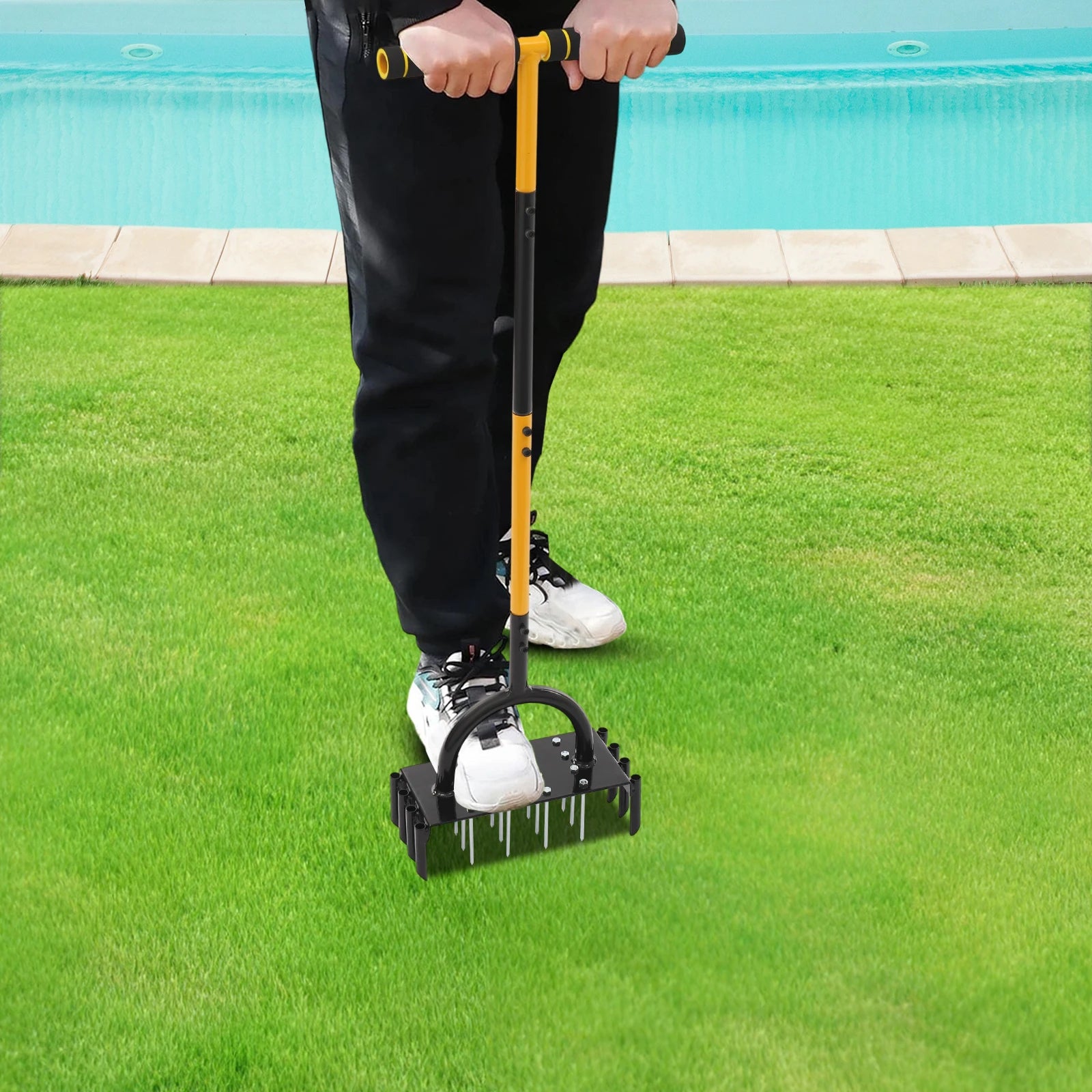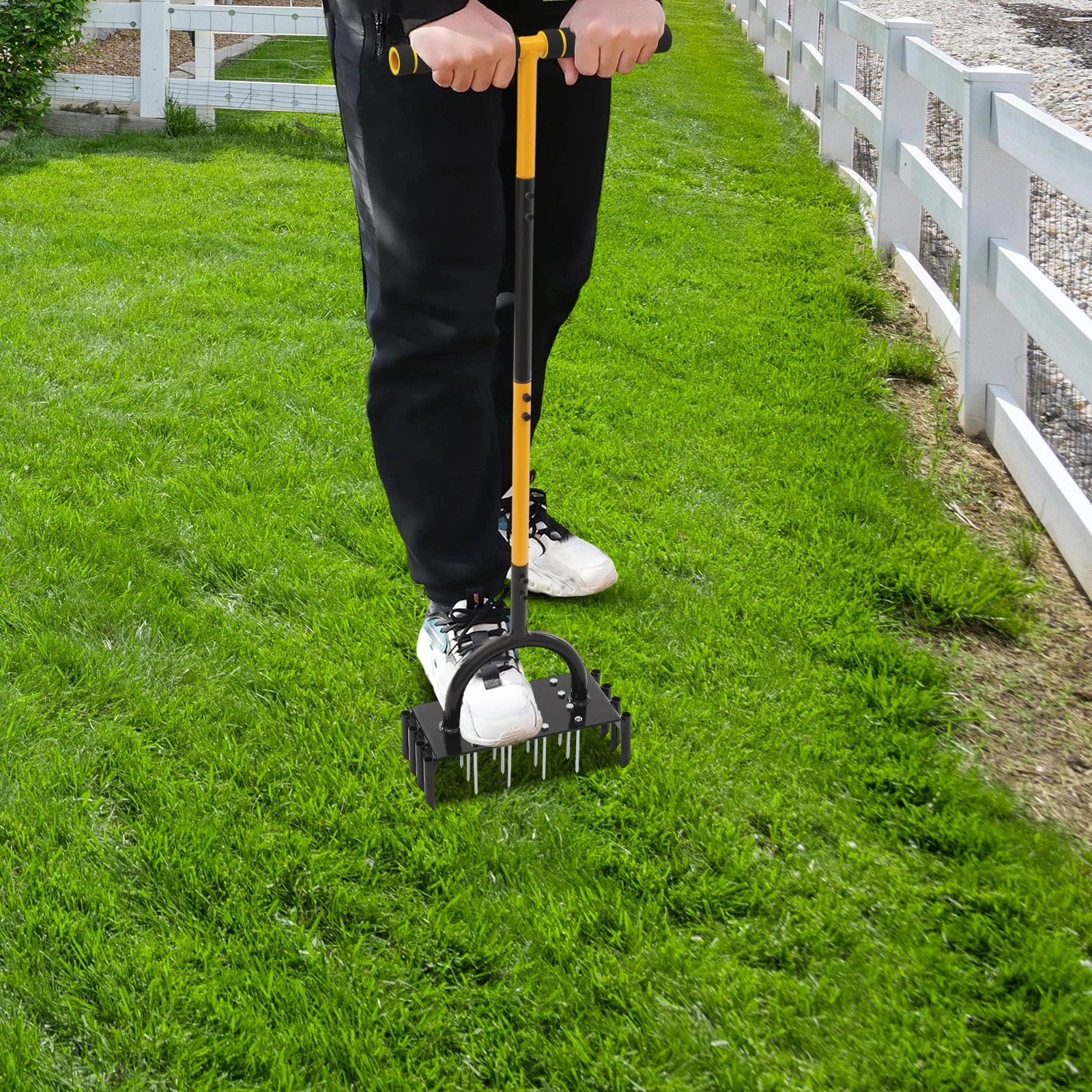 2-in-1-Rasenbelüftungswerkzeug, manuelles Rasenbelüfterwerkzeug mit 16 Spikes und 8 Entkern für Gartengras, loser Boden, verhindert Verdichtung
