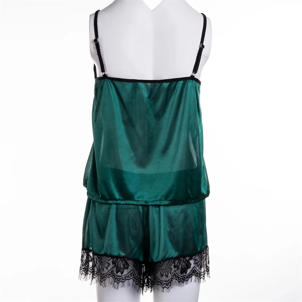 2 Stück sexy Pyjama Set Frauen sexy Spitze Patchwork Satin Seide Spaghetti träger Top heiße Shorts Pyjama Frauen Nachtwäsche Femme Pyjamas