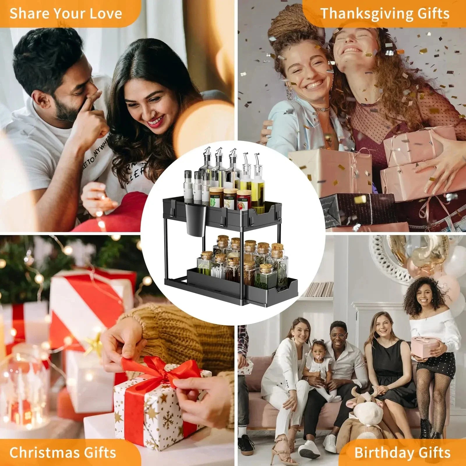 2-stufiger Organizer unter der Spüle, Schiebeschrank, Korb, Organizer, Aufbewahrungsregal mit Haken, hängende Tasse, Badezimmer, Küche, Organizer