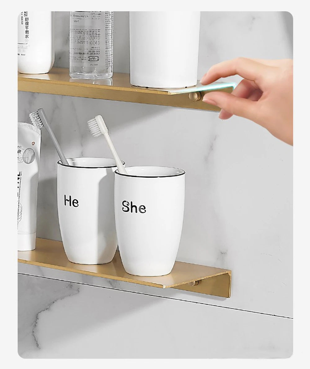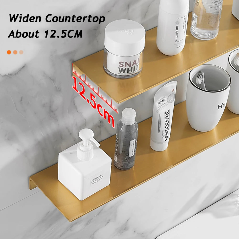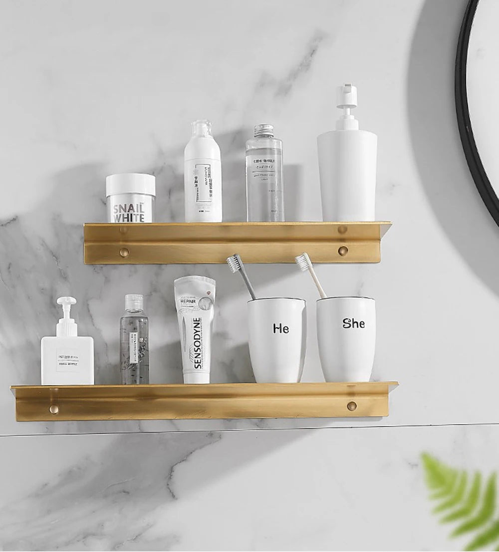 20/30/40/50CM Gebürstet Gold Wand Regal Badezimmer Lagerung Rack Küche Wand Regal Badezimmer Dusche Regale Hause Zubehör