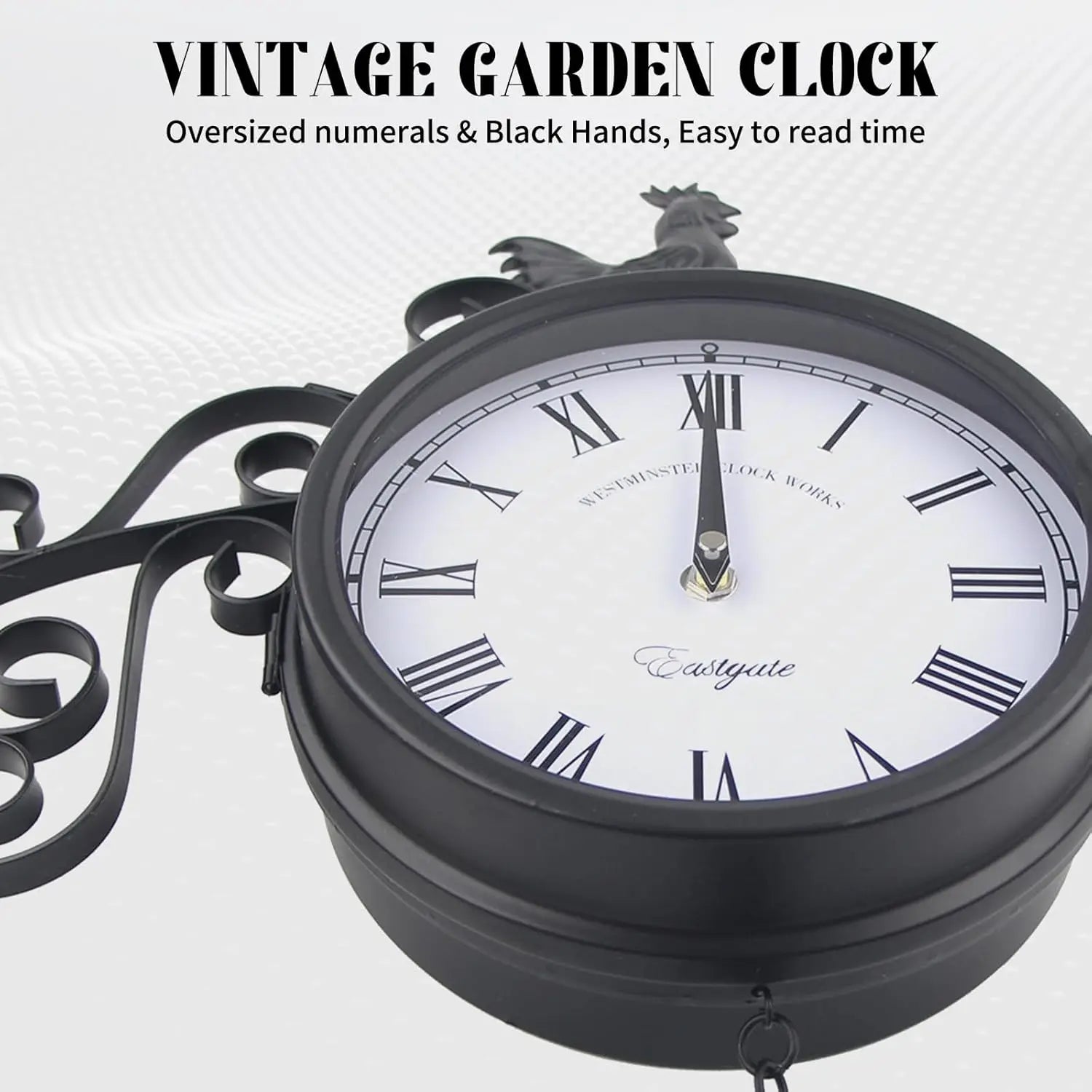 20 cm Retro-Gartenuhr, Stationsuhr, doppelseitiges Design, Gartenuhr mit Wandhalterung, für Garten, Flure