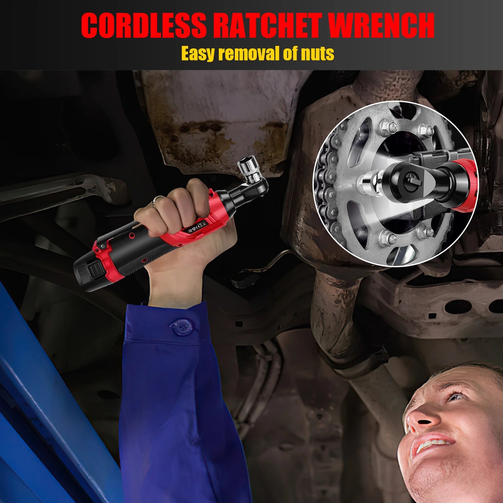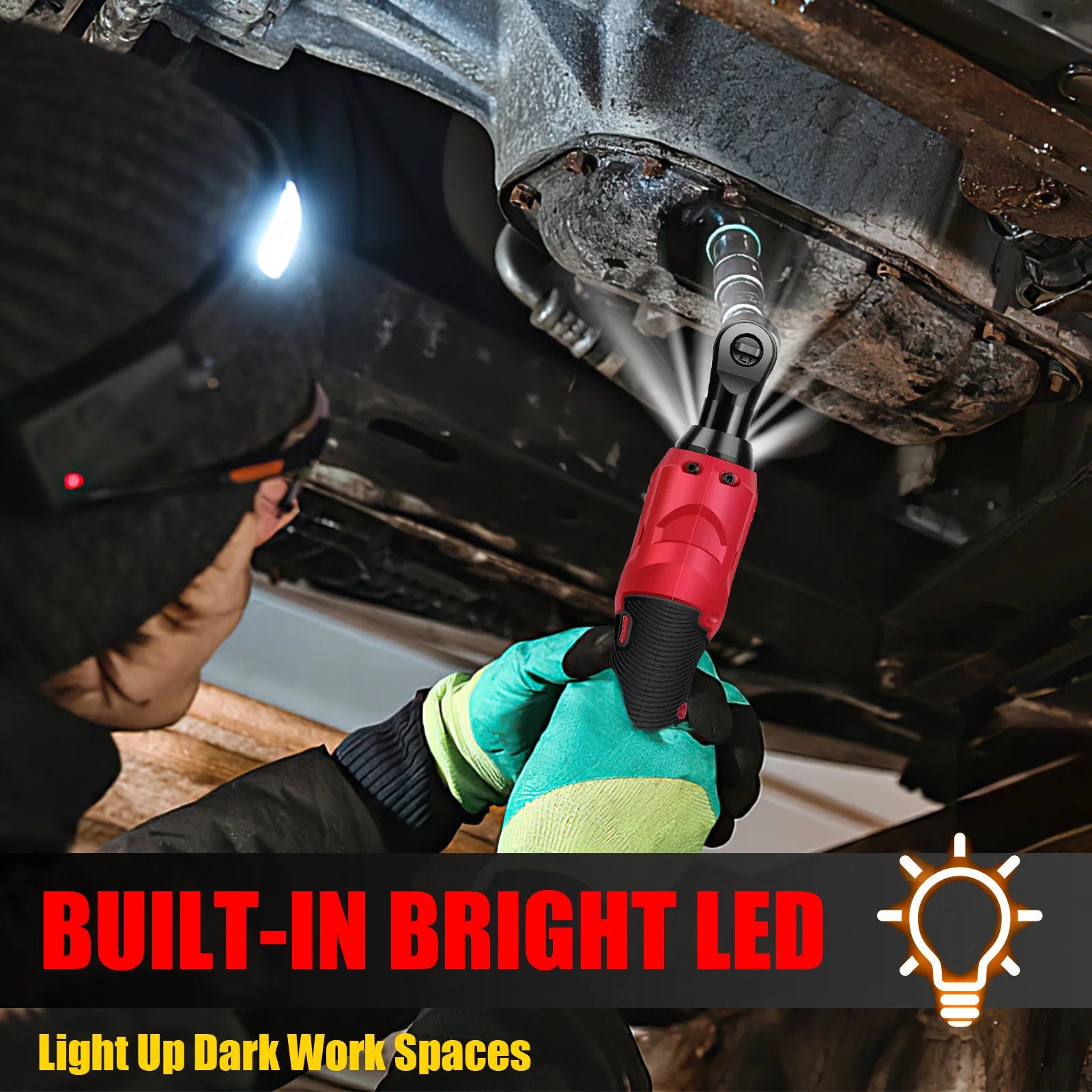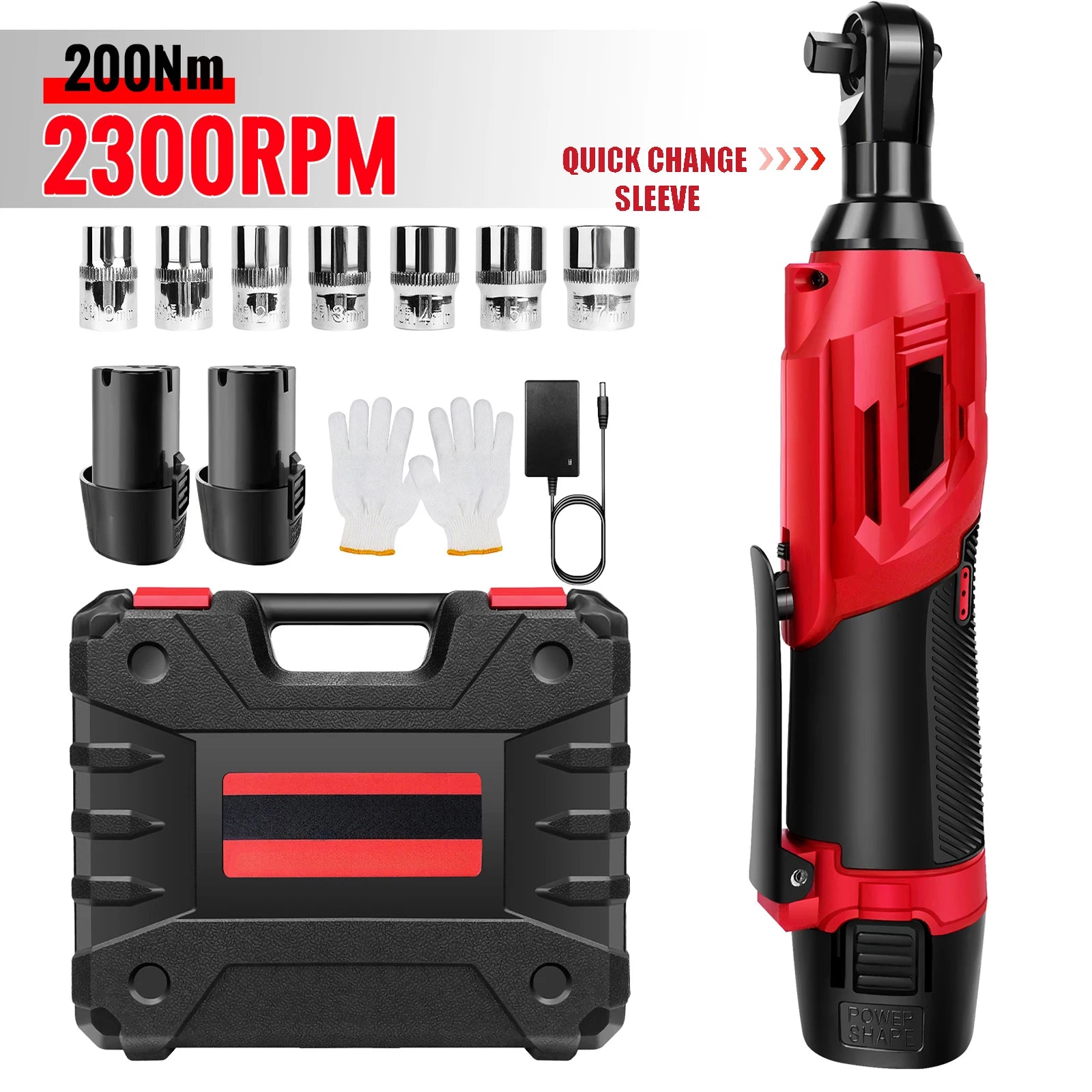 200 Nm kabelloser elektrischer Ratschenschlüsselsatz 90 ° 3/8-Zoll-Winkelschlüssel mit 7-teiligem Steckschlüsselsatz, Ratschenwerkzeug mit 2 Lithiumbatterien
