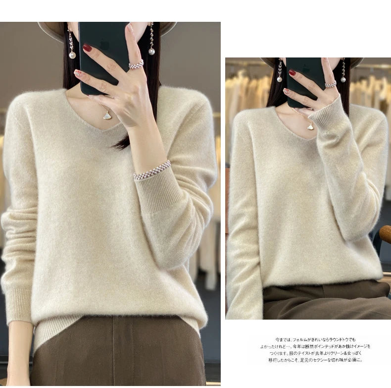 2024 100% Merino Reine Wolle V-ausschnitt Herbst Und Winter Pullover Pullover Neue Kaschmir Pullover frauen Beiläufige Gestrickte Top DMR201
