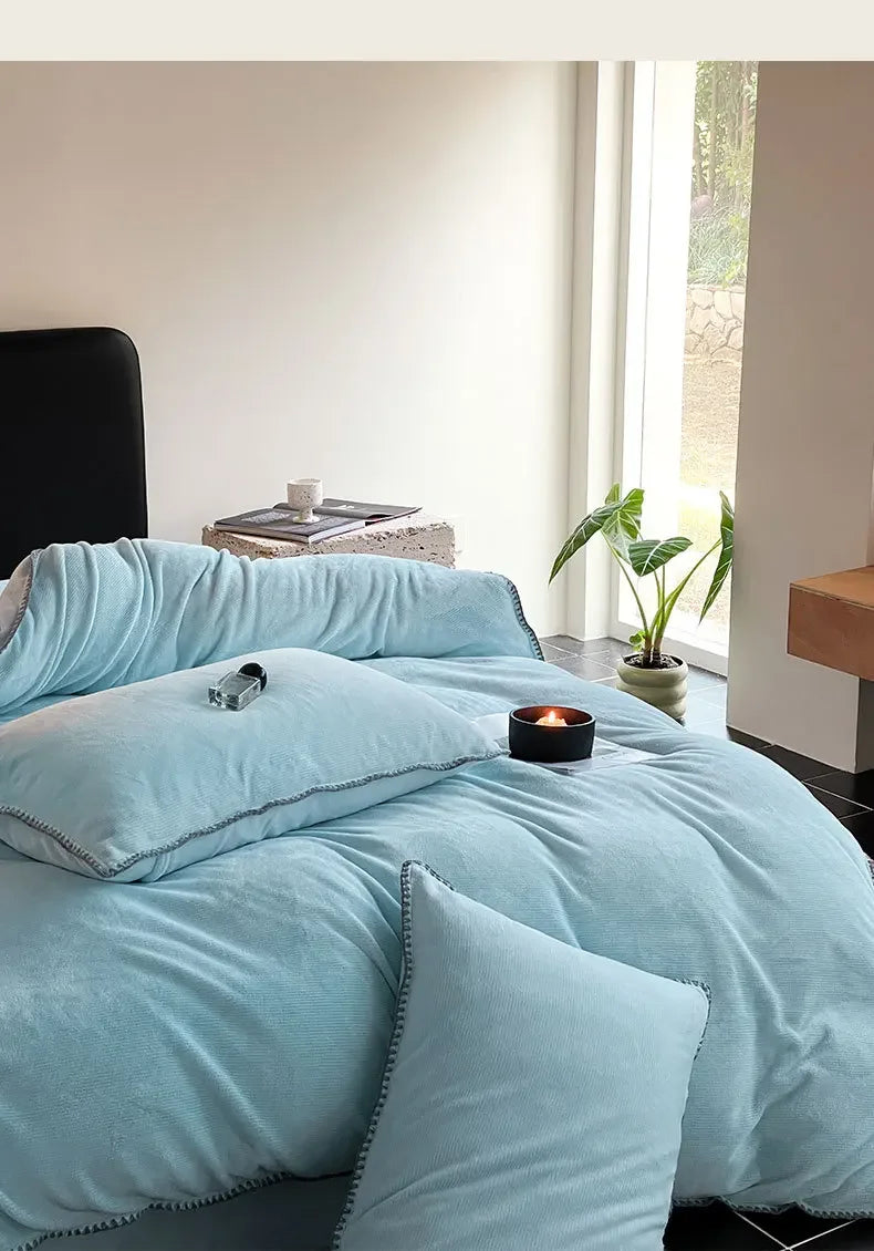 2024 new matte thin strip shell edge winter bed four-piece set milk fleece coral fleece thickened warm bed sheet quilt cover
