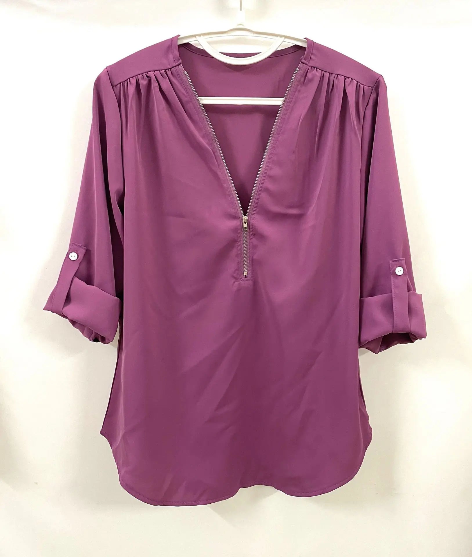 2024 Quality HotSale Plus Size Deep V Neck Women Blouse Chiffon Cool Loose Shirt Fashion Casual Ladies Tops Sexy Zipper Pullover