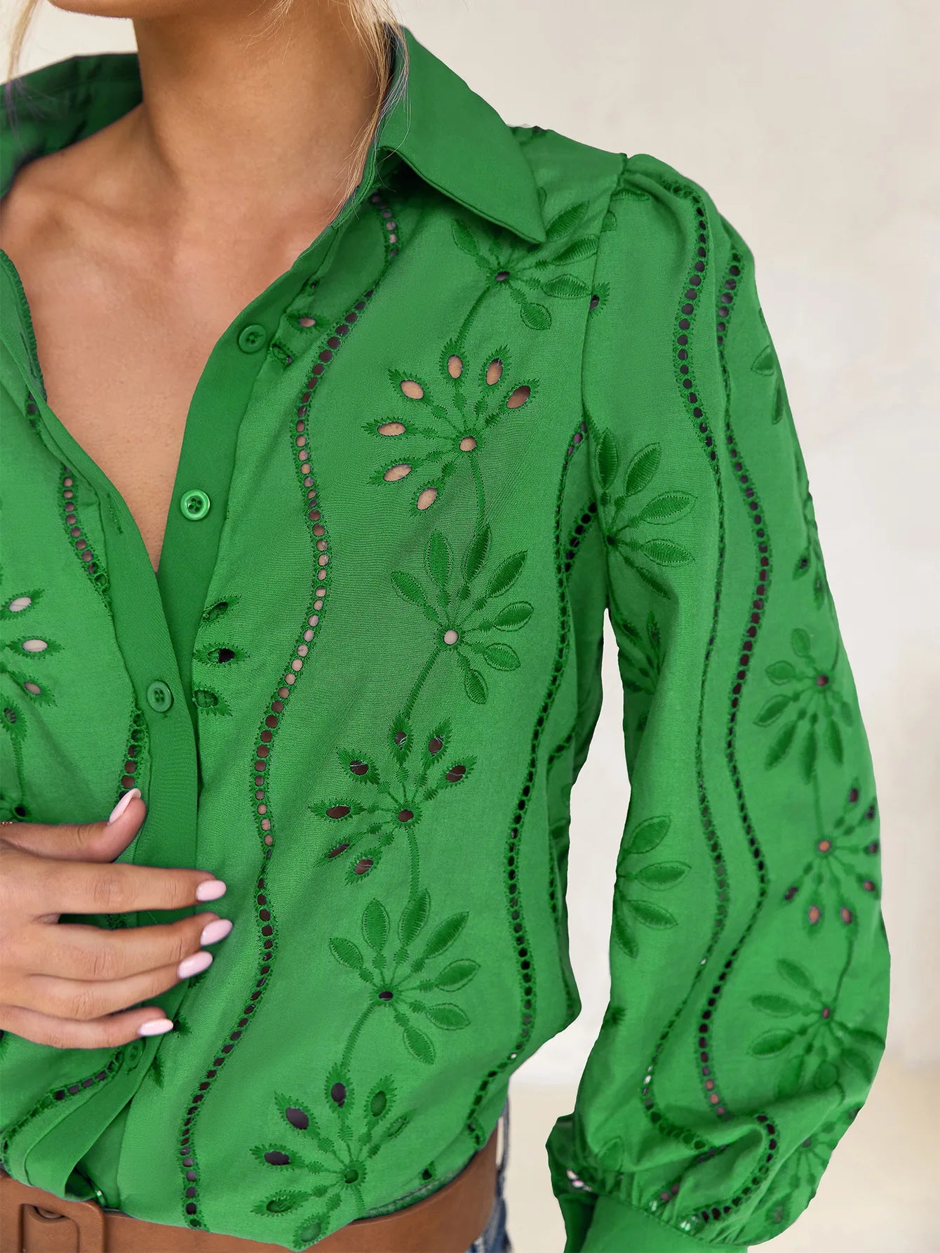 2025 Autumn New Solid Shirt Casual Loose Fashion Hollow Puff Sleeve Cardigan Tops For Women Office Black Hollow out Blouses