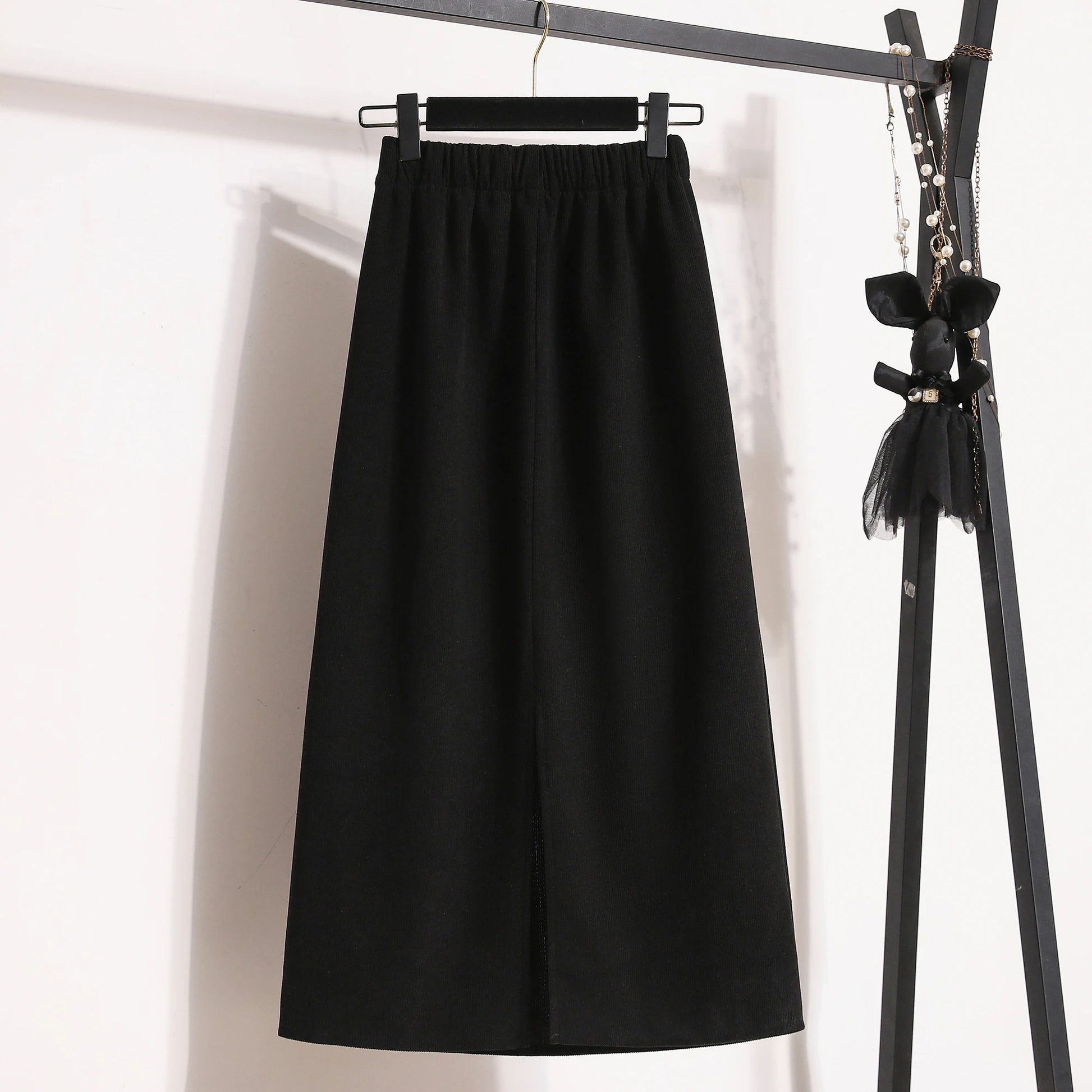 2025 Autumn Winter Plus Size Skirts Women High Waist Solid A-line Skirt Back Slit Korean Thick Elegant Fleece-lined Style Skirts