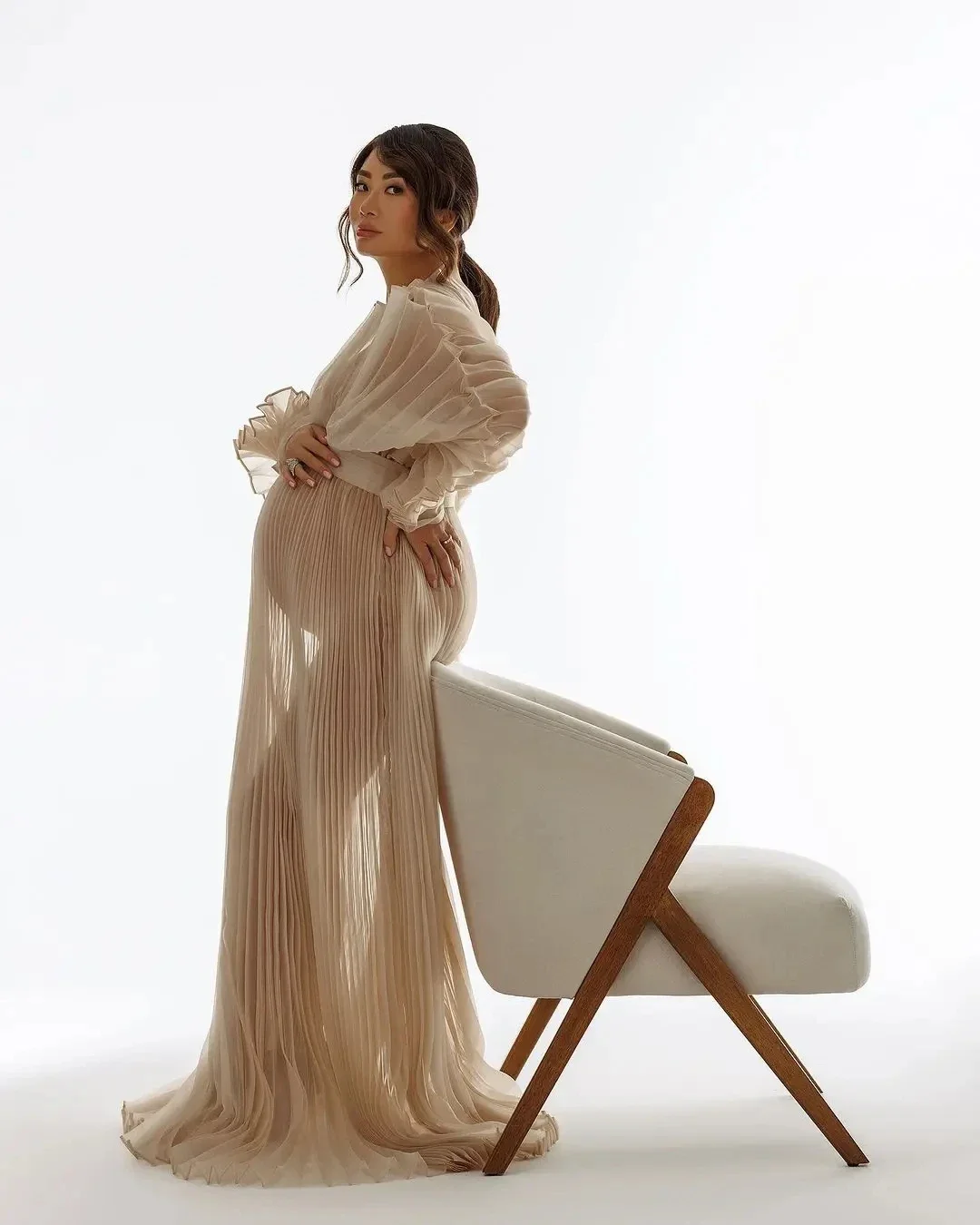 2025, modische, durchsichtige, plissierte Organza-Umstandskleider für Fotoshootings, langes Kleid für Umstandsshooting, Babyparty-Kleider YEWEN