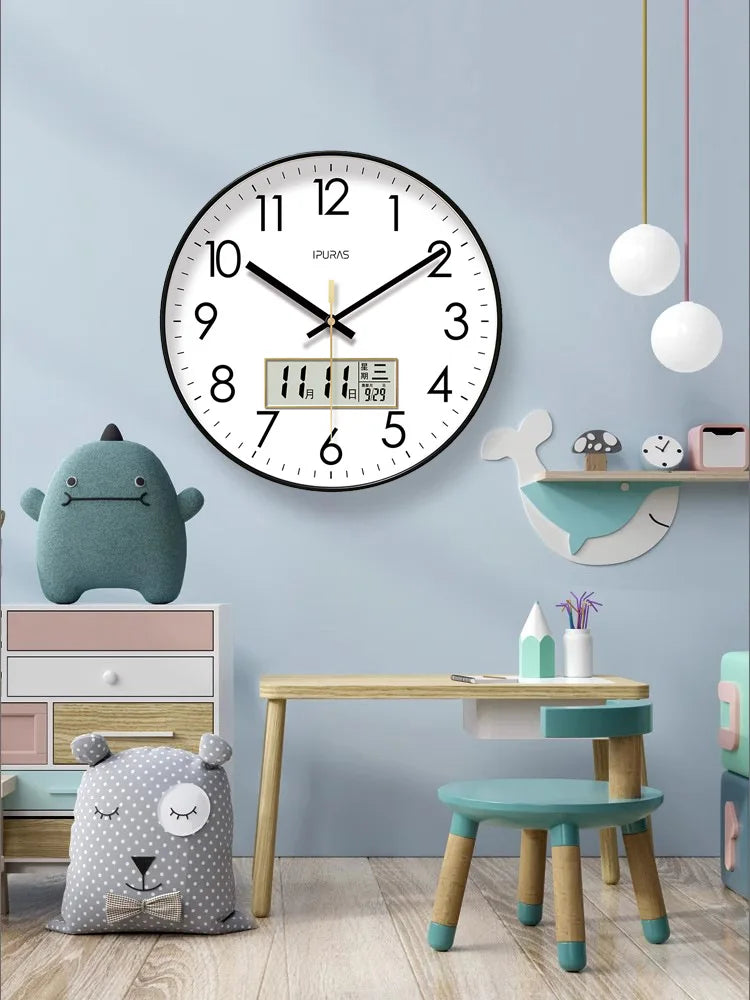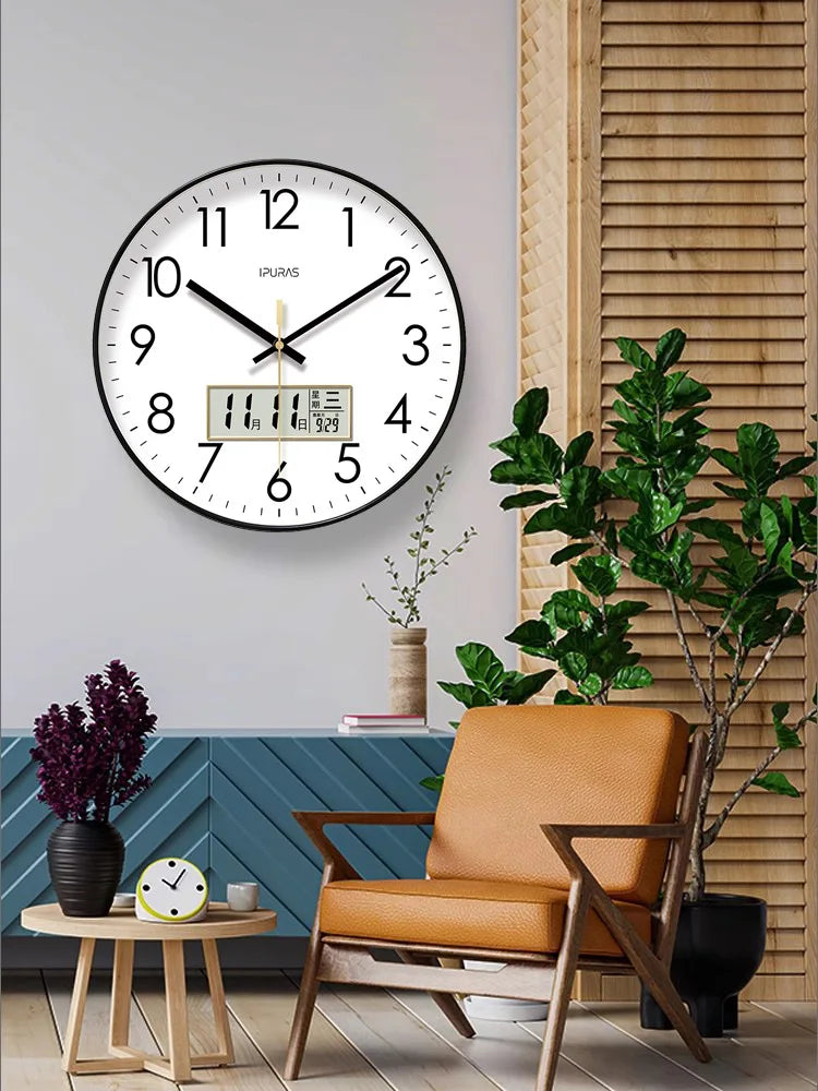 2025, neue 10/12/14 Zoll Temperatur und Luftfeuchtigkeit, elektronischer Kalender, multifunktionale Wanduhr, Dual-Display, stummgeschaltete Quarzuhren
