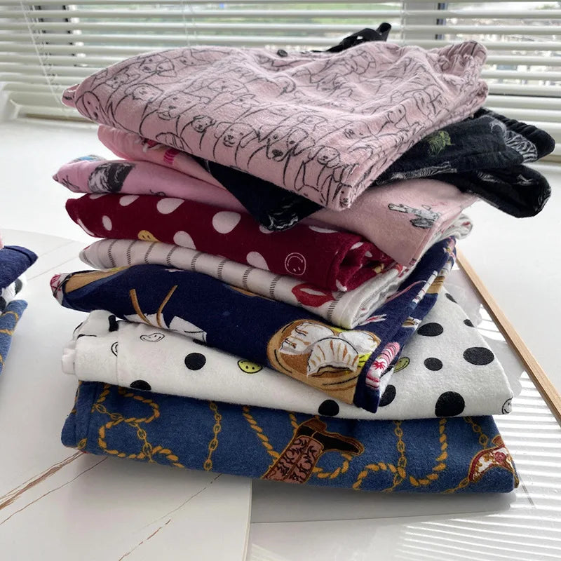 2025 New Pajamas Suit Cotton 2 Piece Set Women Print Cartoon Nightwear Long Sleeve Trousers Set Autumn Loungewear Home Clothes