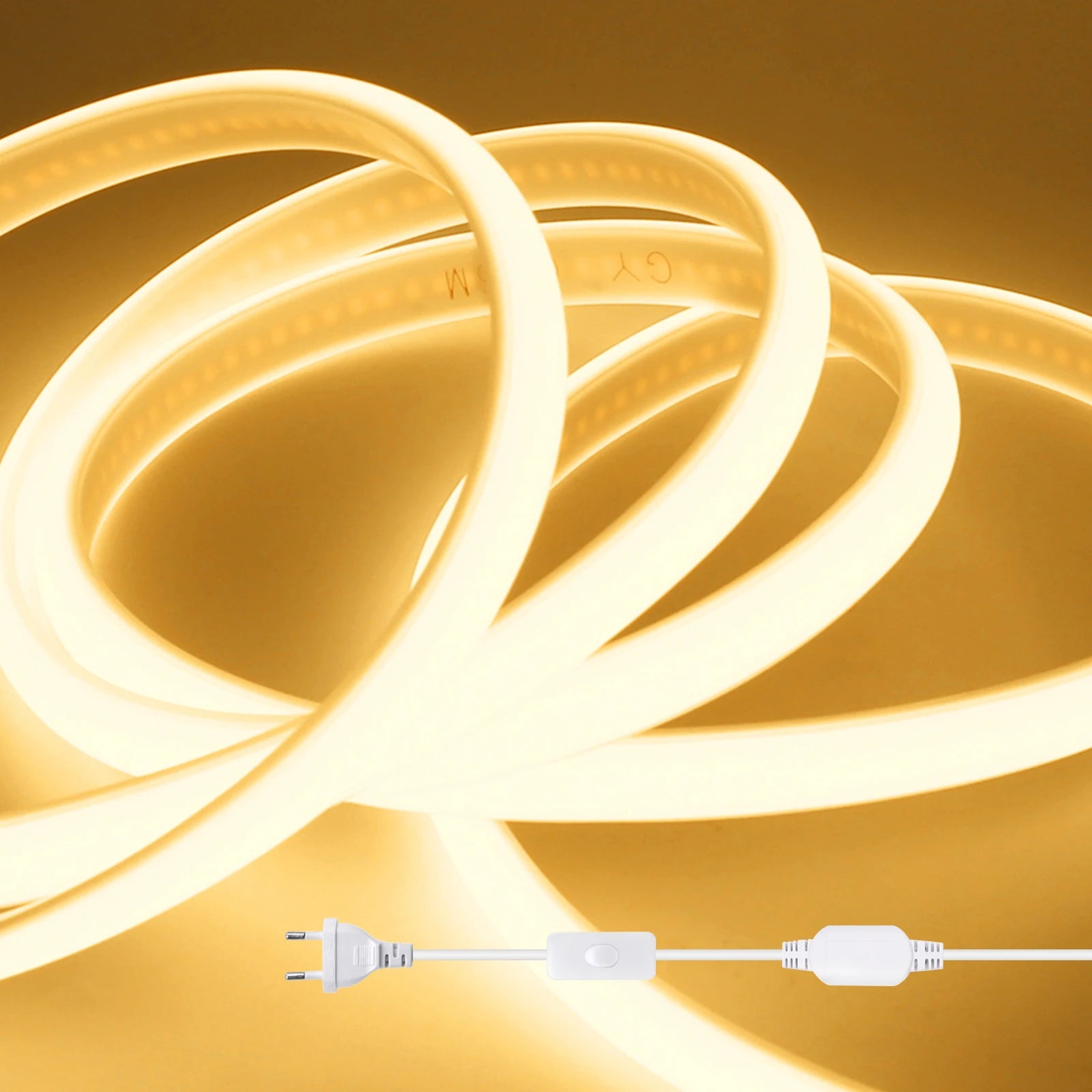 220V COB LED Light Strip Waterproof With EU Plug Red/Blue/Pink/Green Home Outdoor Garden Lighting Flex Silicone Tube Neon Lamp