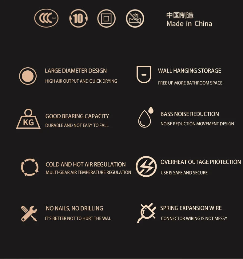 220V Hotel Wall Mounted Hair Dryer Hotel Non punching Negative Ion Hair Protection Cold and Hot Air High Power Hair Dryer