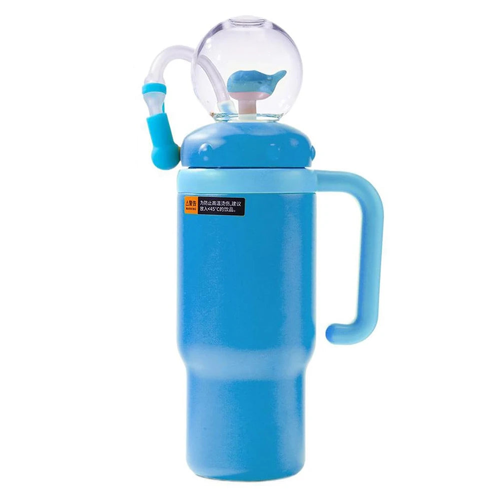 24oz Stainless Steel Whale Fountain Tumbler Straw Water Cups Kids Adults Travel Water Bottles Whale Water Cups Car Water Bottle