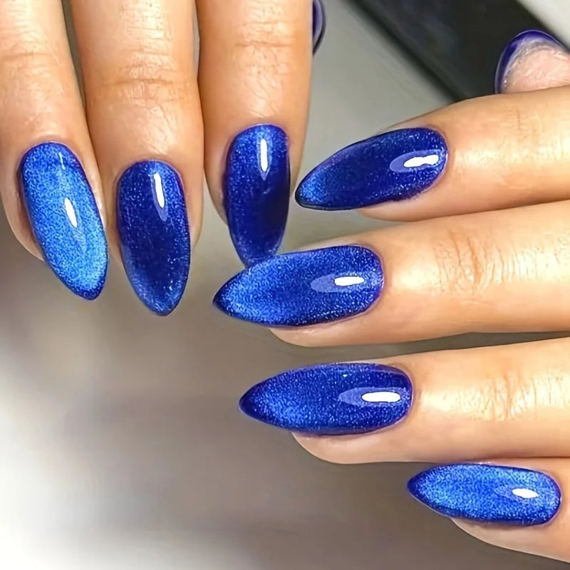 24pcs Glossy Red Cat's Eye Press On Nails Full Cover Nude Color Wearable Almond False Nails Charms Detachable Fake Nail For Girl