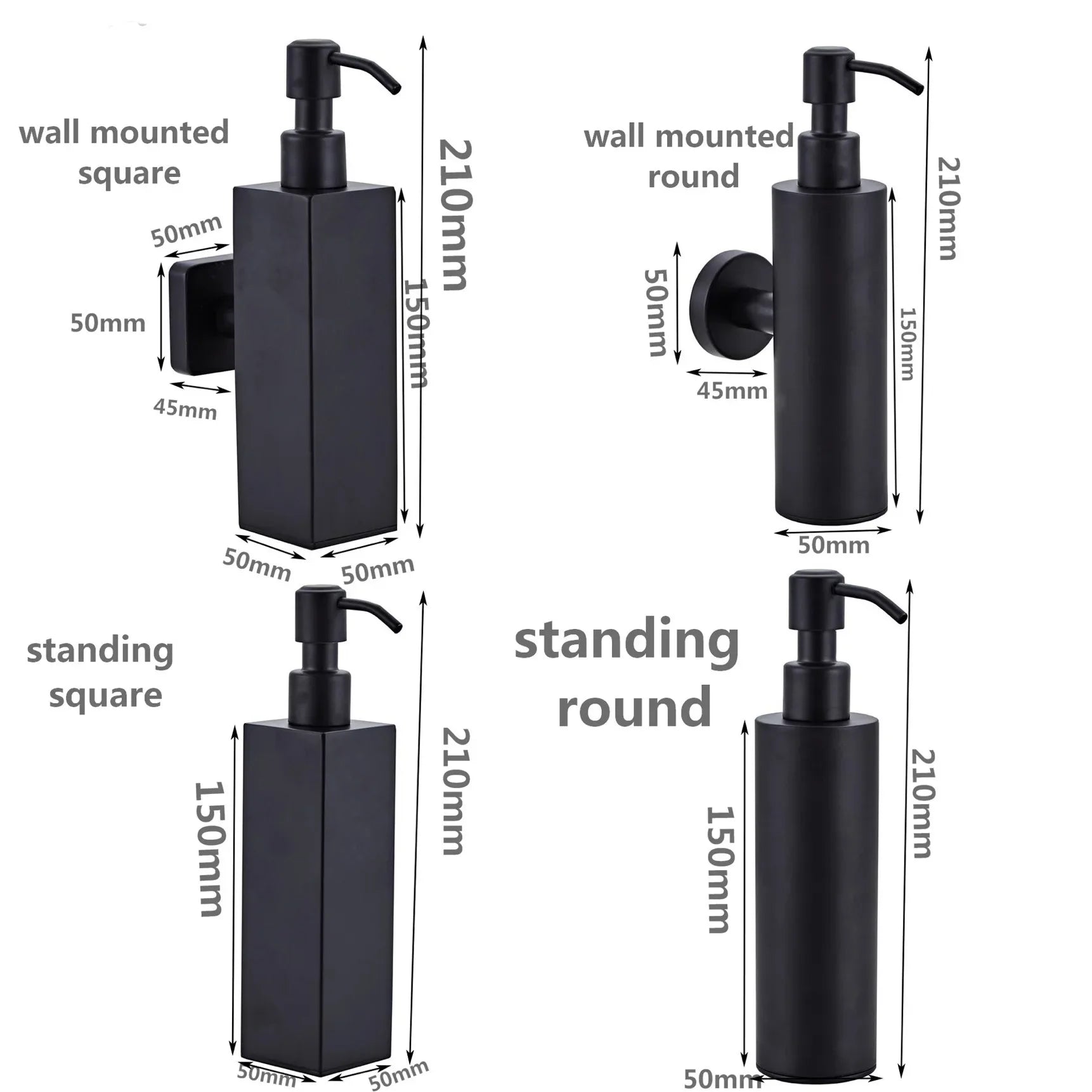 250 ml manueller Seifenspender aus gebürstetem Edelstahl zur Wandmontage, goldener schwarzer quadratischer runder Seifenspender für Hotelbadezimmer