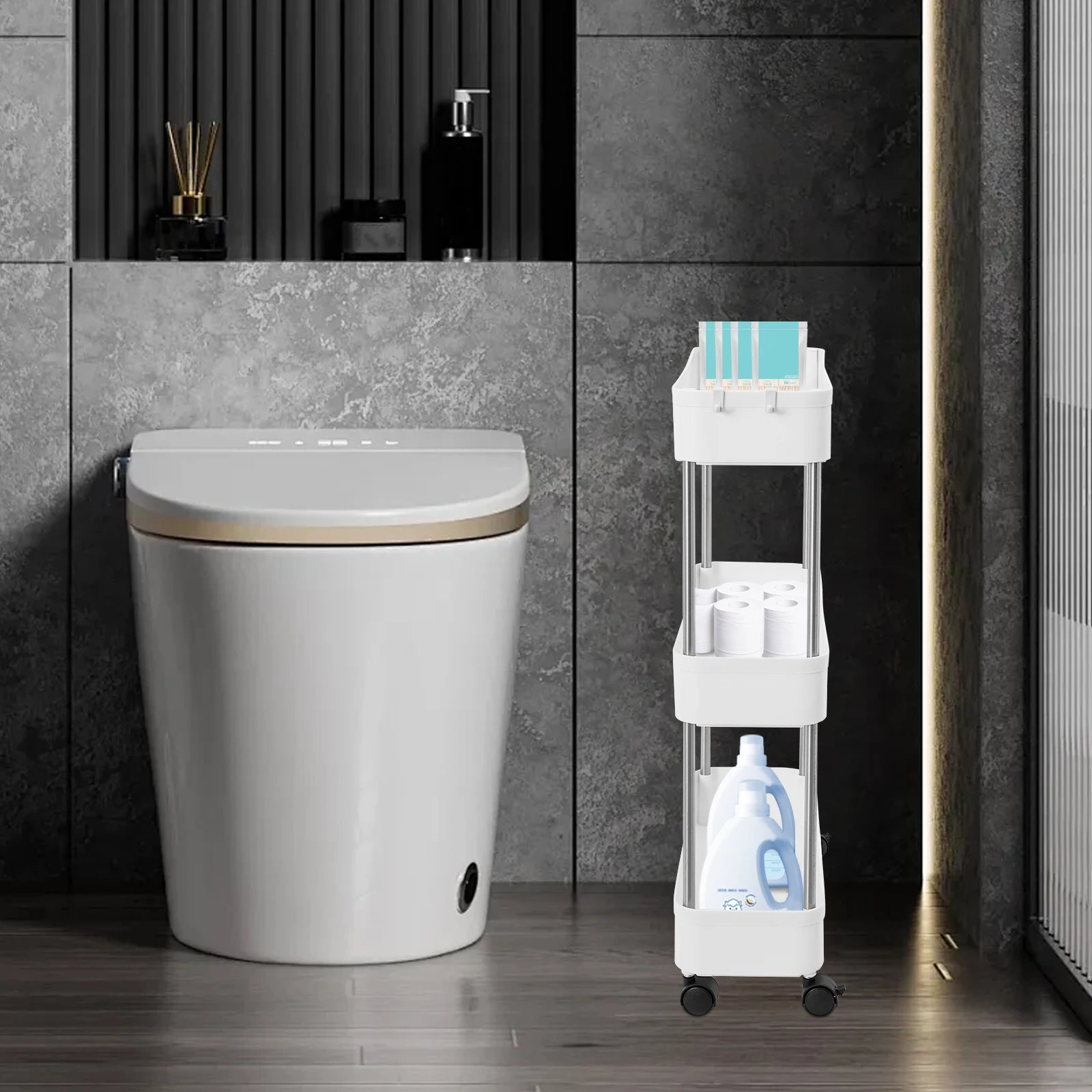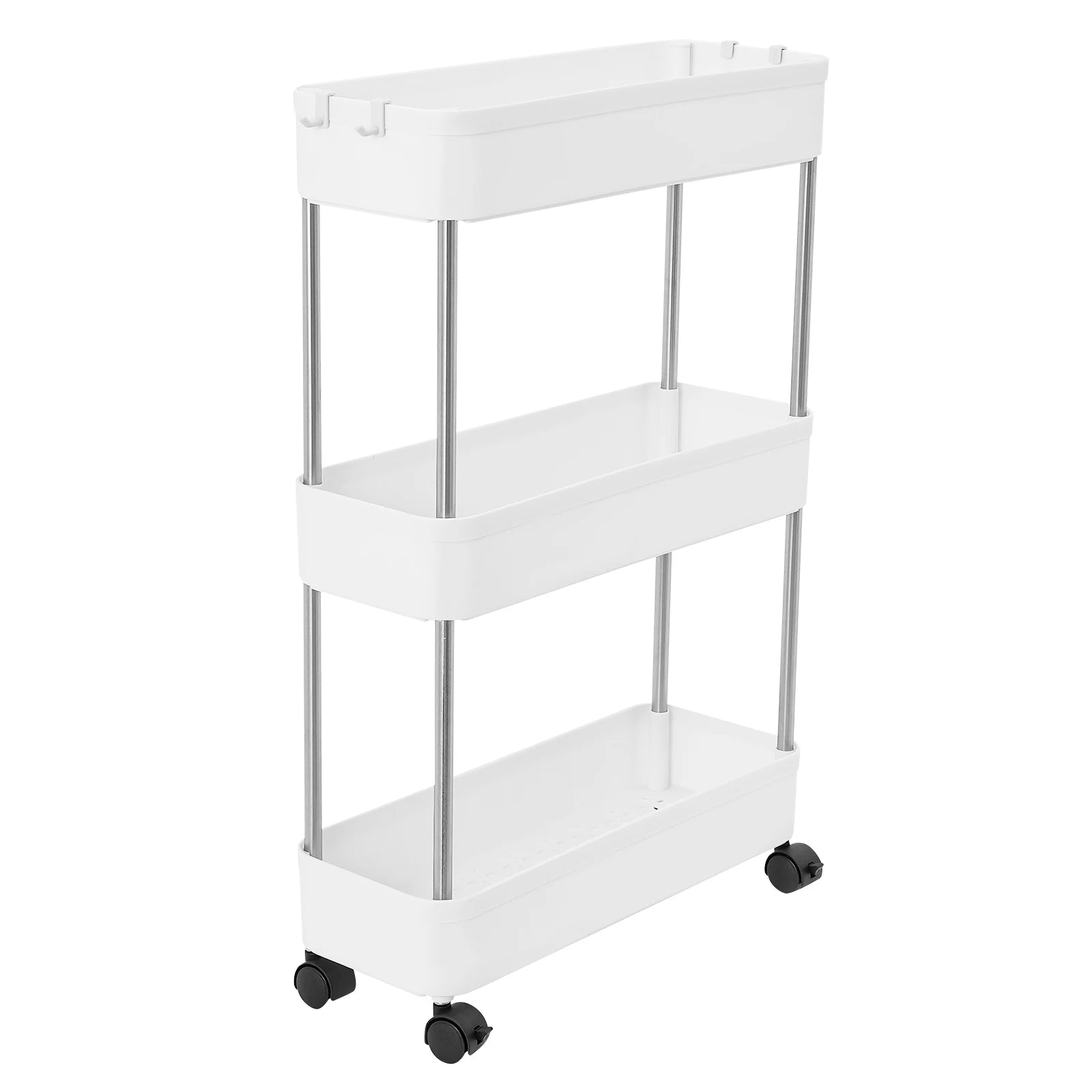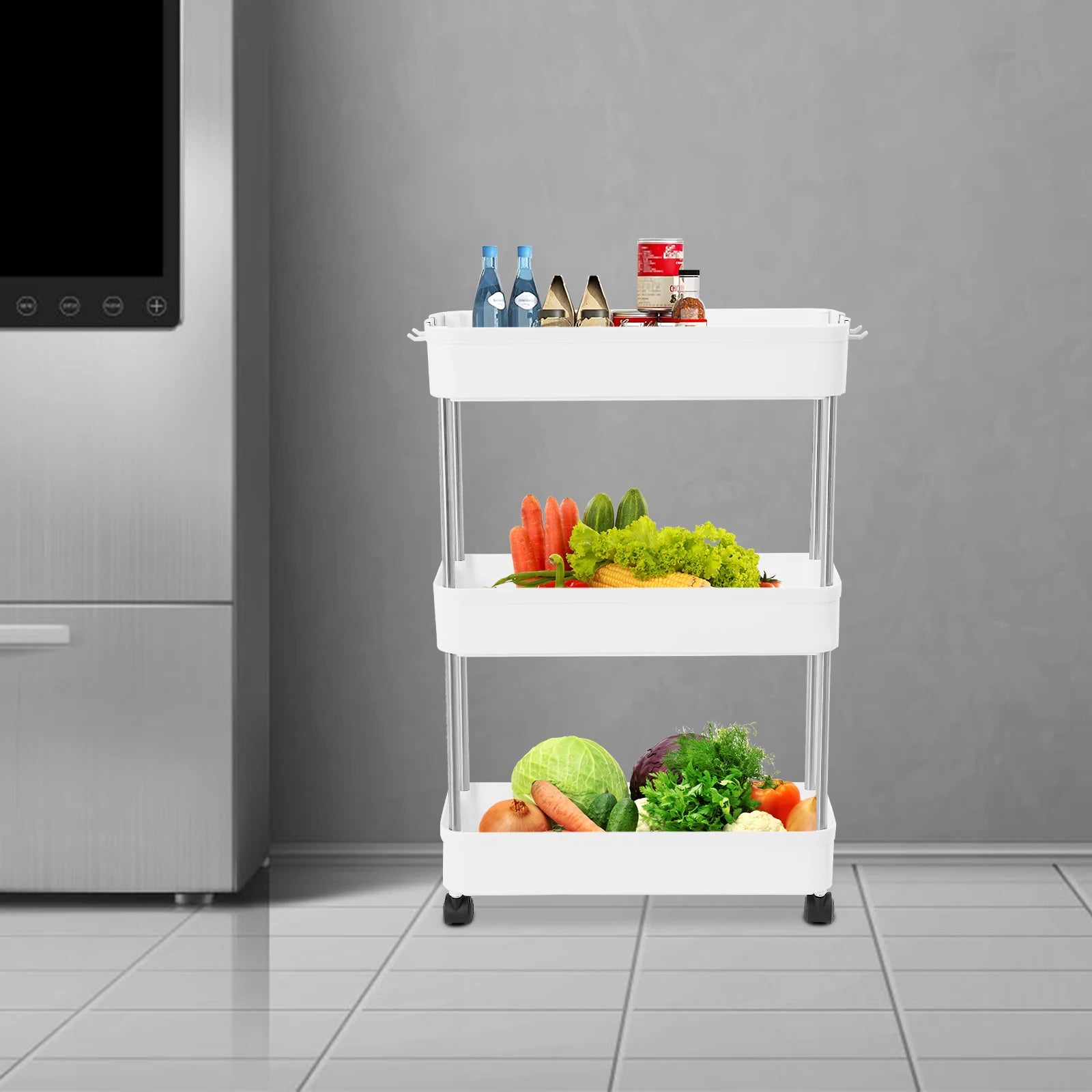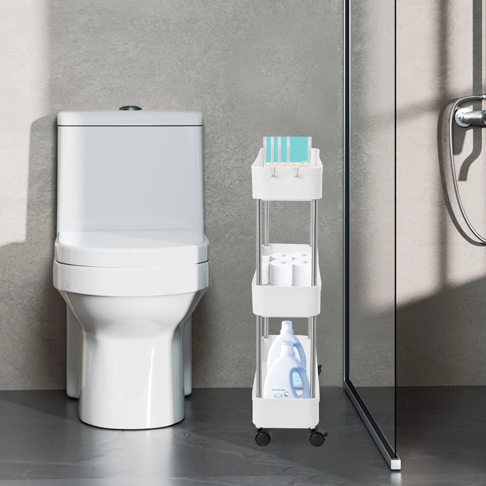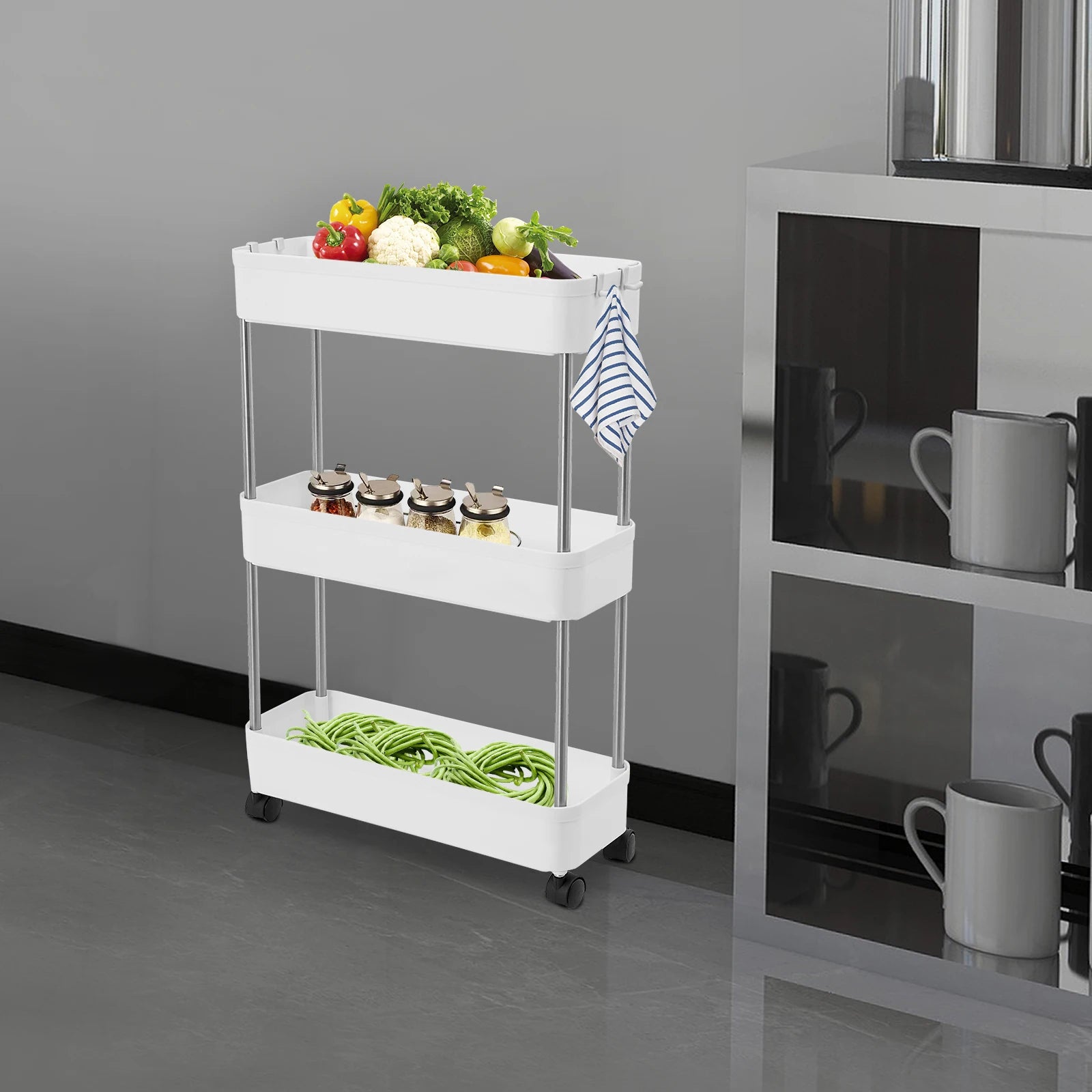 3-lagiges Rollwagen-Regal, bodenstehendes Lagerregal mit 4 Universalrädern, 4 Haken, Küche, Badezimmer, Organizer