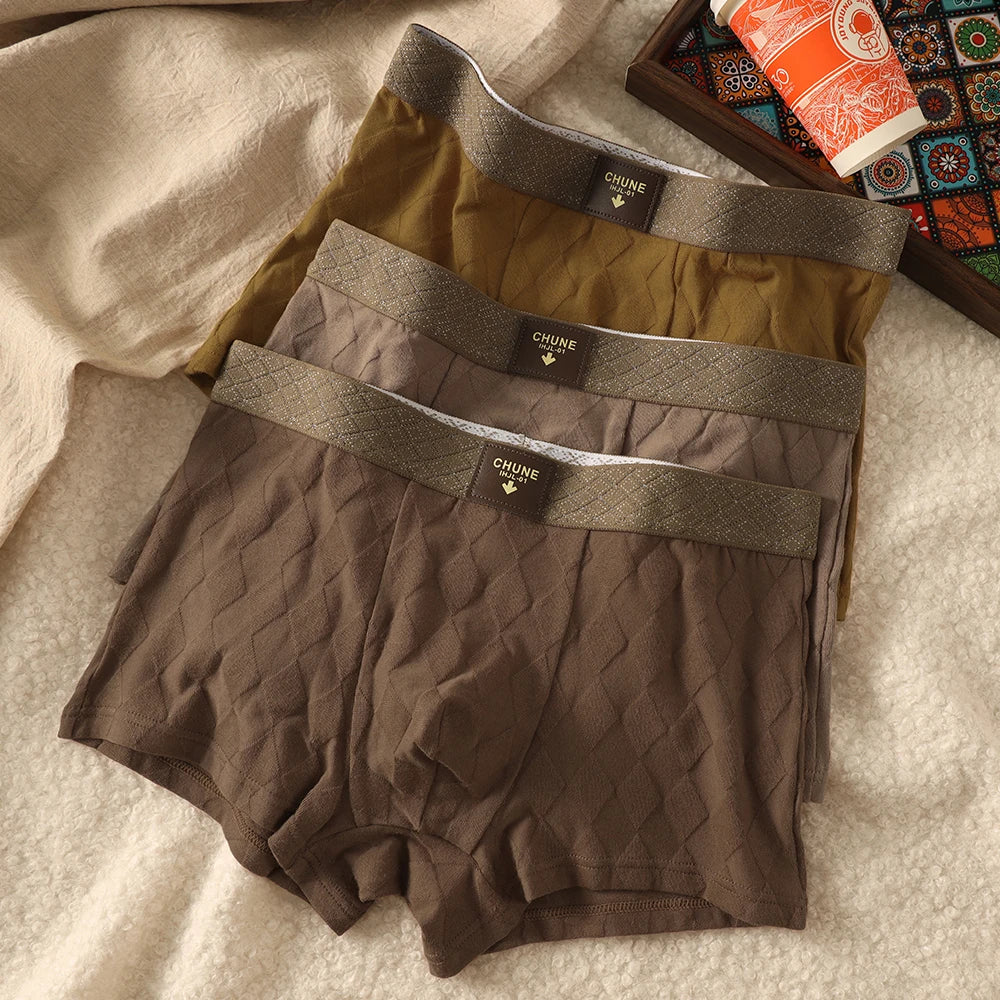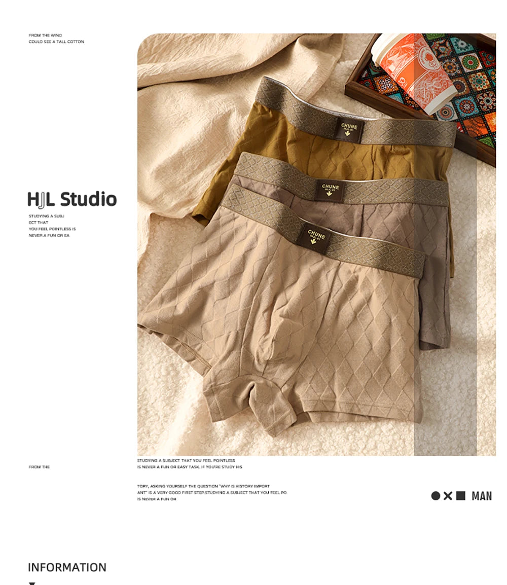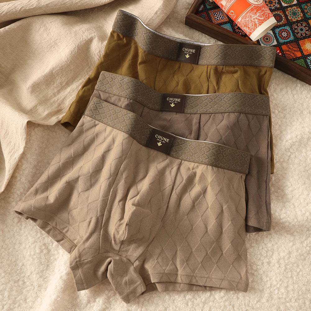 3 Teile/paket 100% Baumwolle Solide Raute Unterwäsche Atmungsaktive Antibakterielle Mesh Schritt Boxer Mann Hohe Elastische Wiast Männer der Höschen