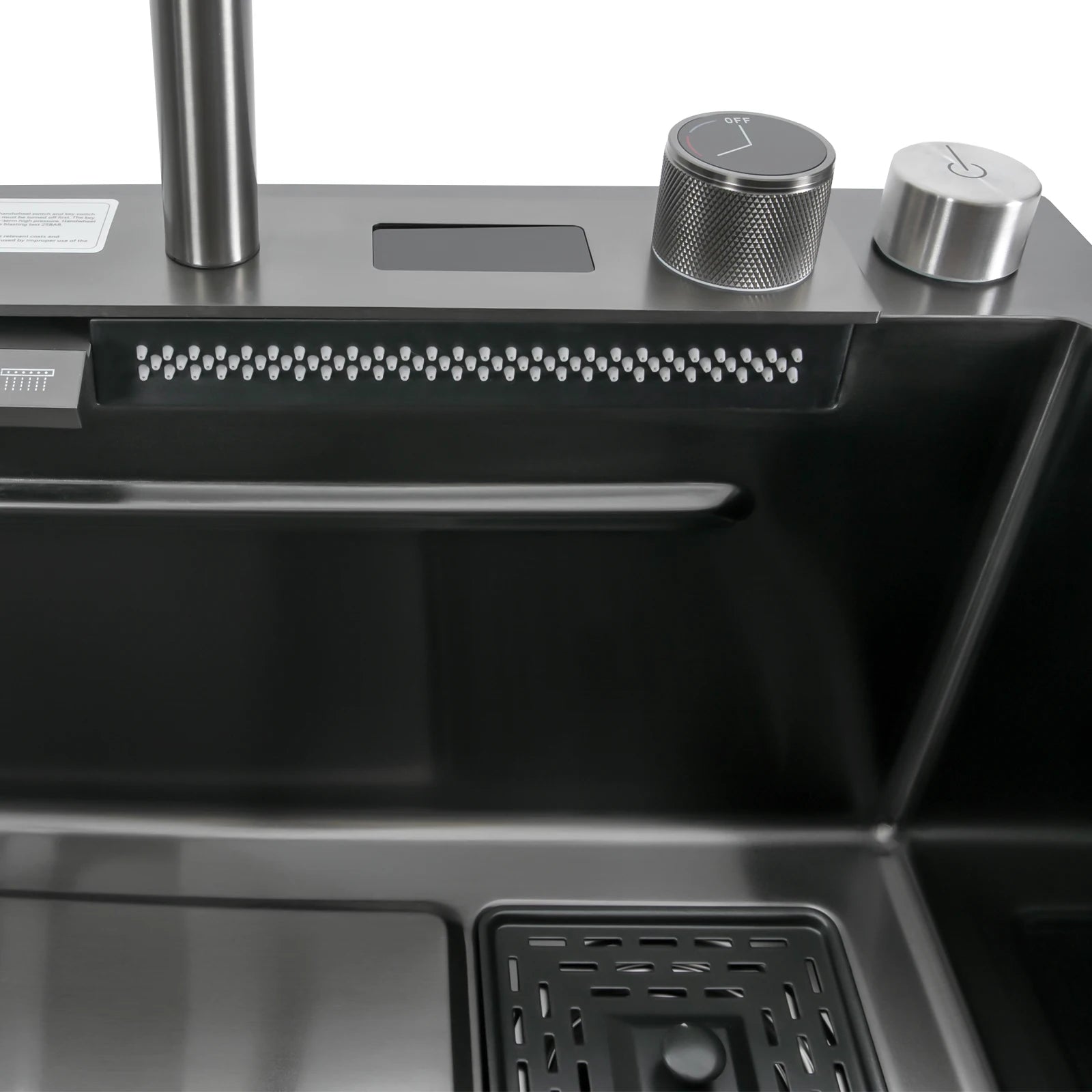 30"*18" Digital Display Waterfall Sink,Multifunctional Workstation Kitchen Sink,Kitchen Sink with Pull-Out Faucet