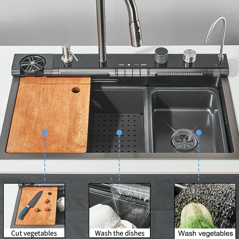 304 Stainless Steel Multifunctional Kitchen Sink Faucet Set Rainfall Spout Pull Out Sprayer Pure Tap Cold Hot Water Mixer