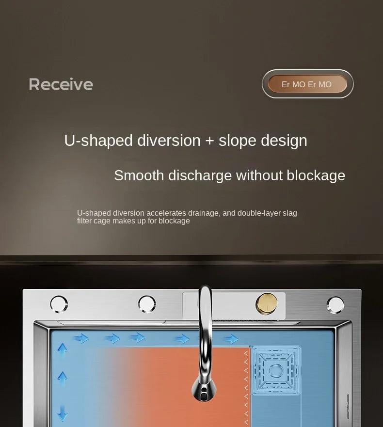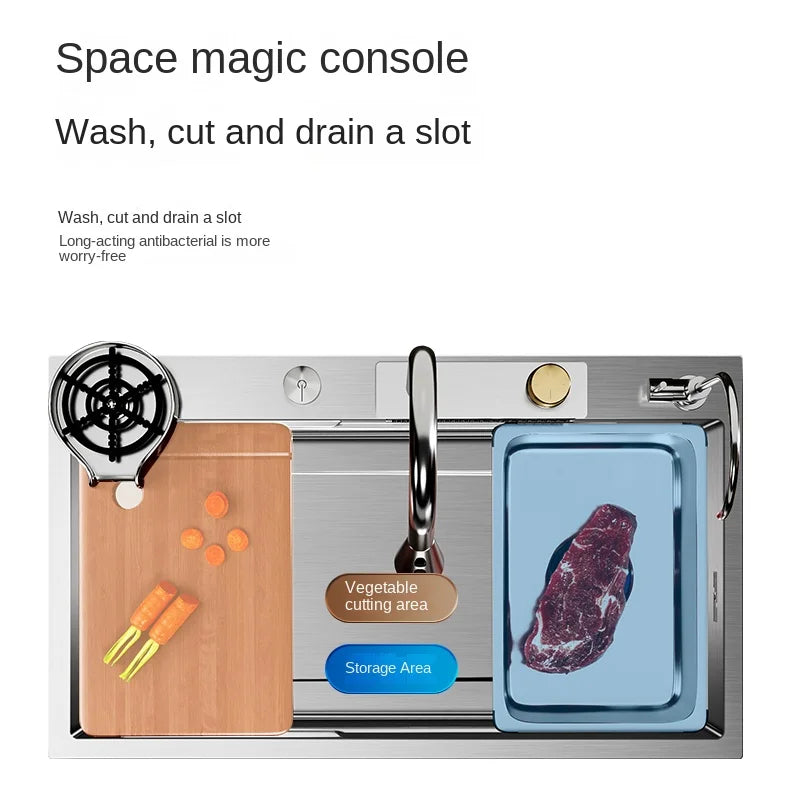 304 Stainless Steel Sink Waterfall Large Single Slot Kitchen Sink Vegetable Sink Stainless Steel Sink Household Sink