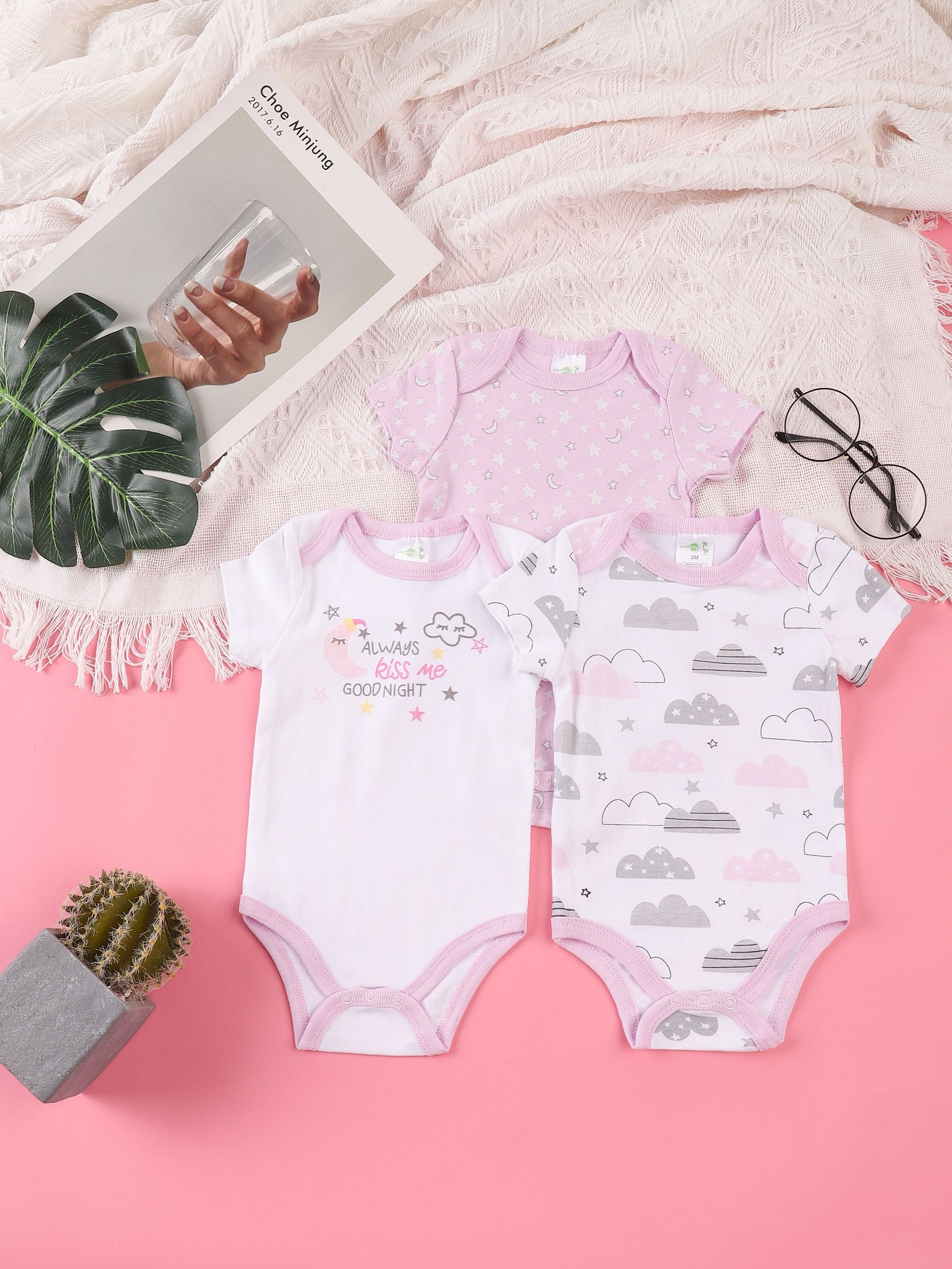 3PCS Sommer Jungen und Mädchen Nette Muster Hoodie Set Kurzarm Dreieck Overall Neugeborenen Baumwolle Bequeme Overall Pyjamas