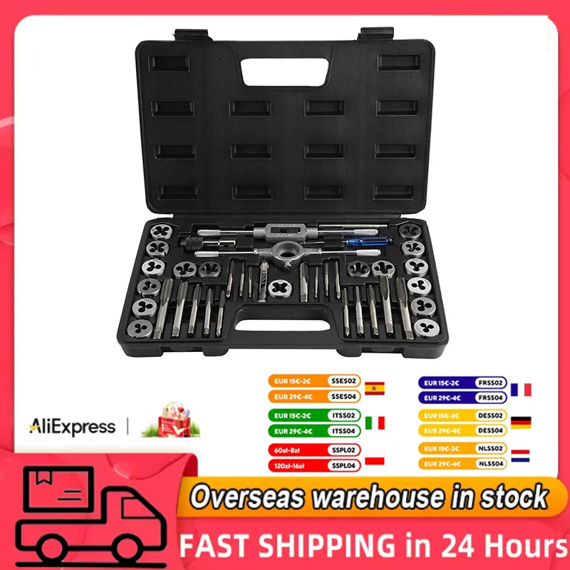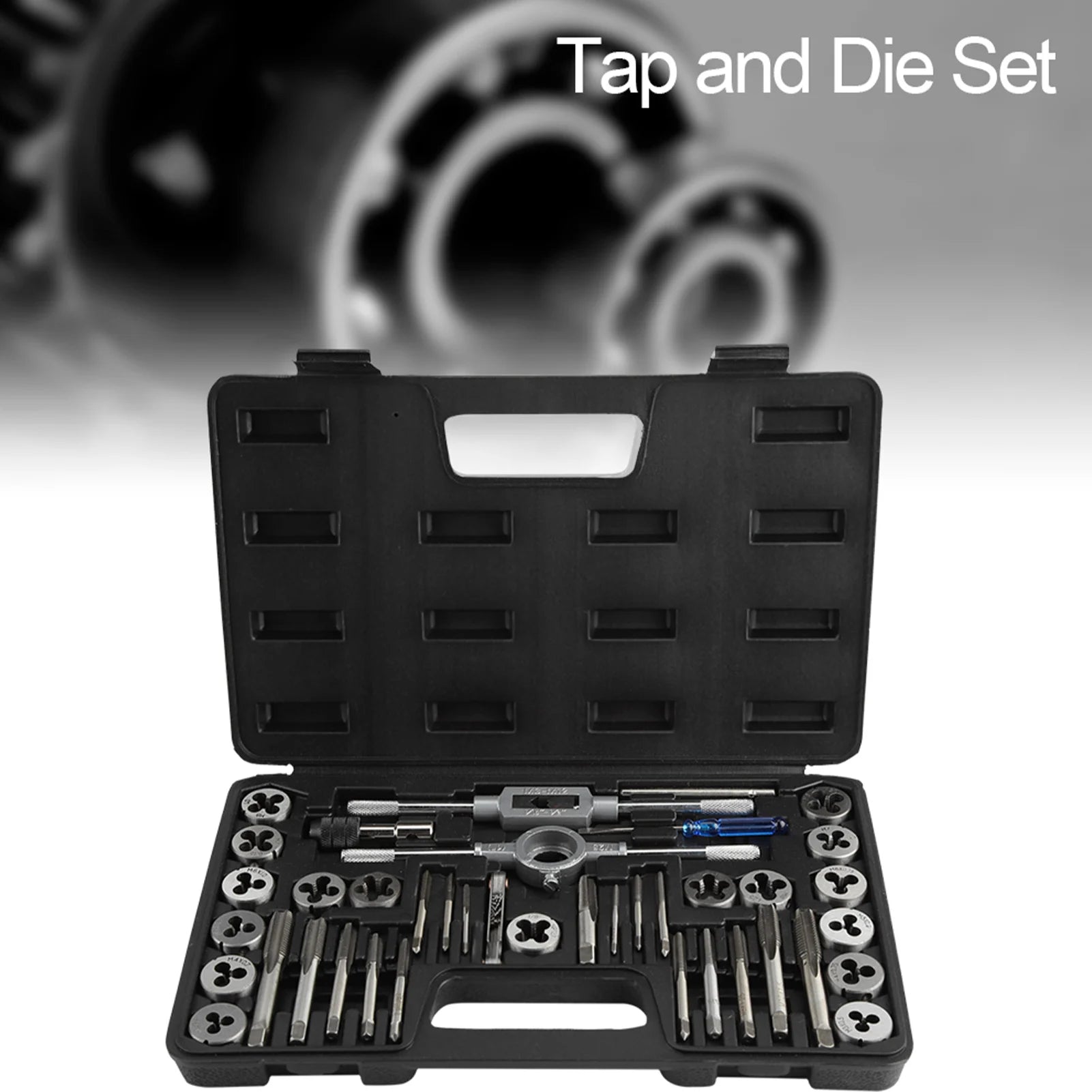 40-teiliges Gewindebohrer-Gewindebohrer-Set mit Gewindebohrer M3-M12, Gewindebohrer und Matrizenset mit Schraubenschlüsseln und Gewindelehre, robuste Handwerkzeuge
