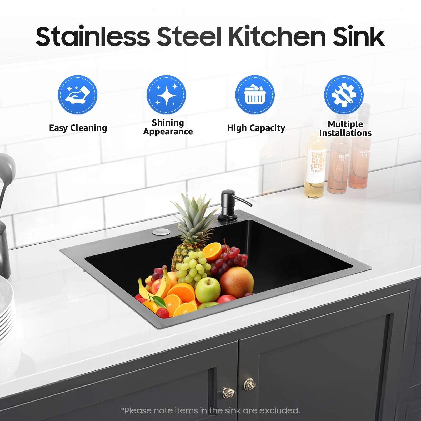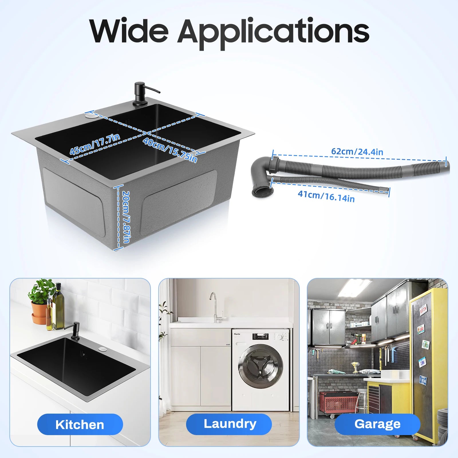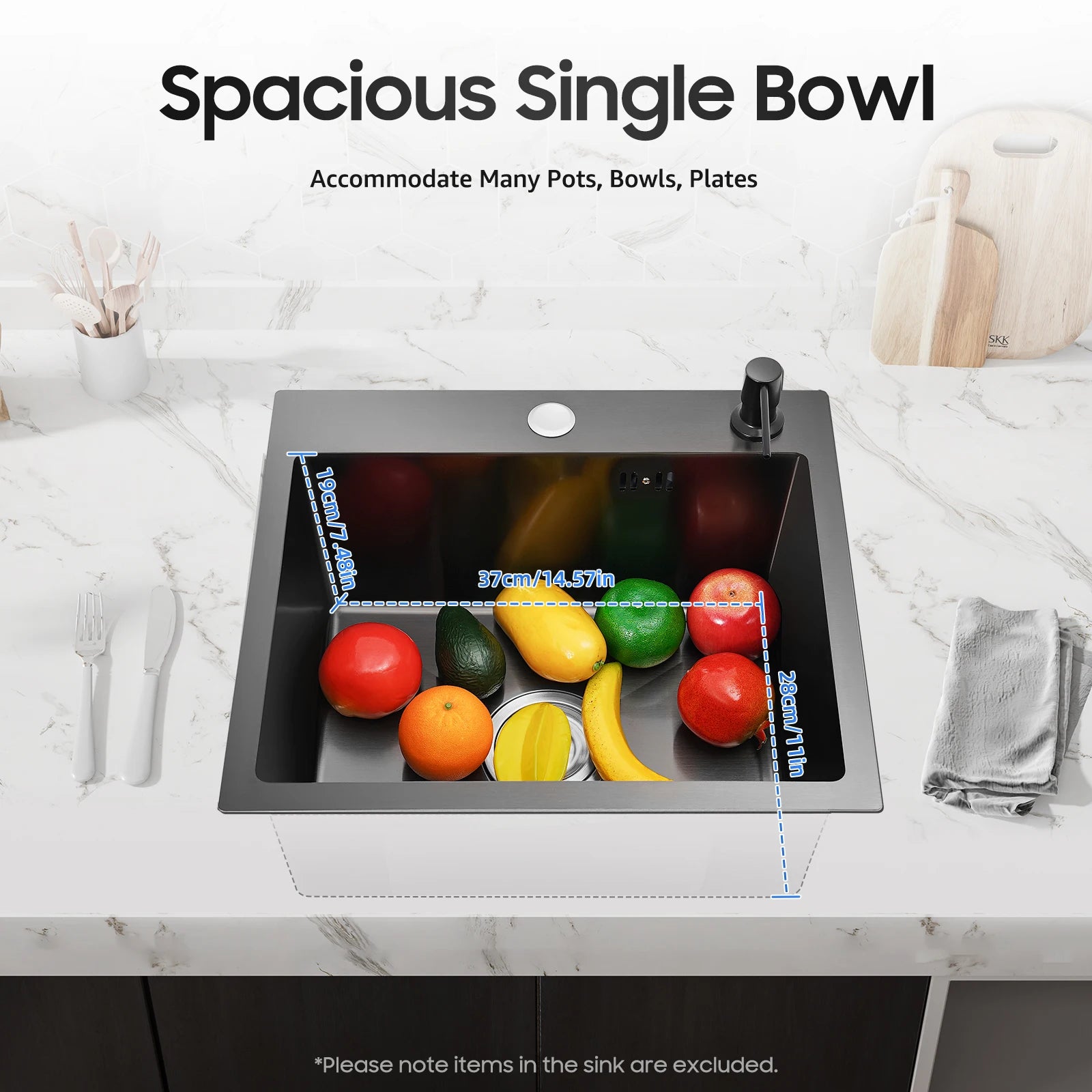 40 x 45 x 20 cm Küchenspüle-Set, Spüle aus Edelstahl 201 mit Abflusskorb und Seifenspender für Küchen, Badezimmer, Waschräume