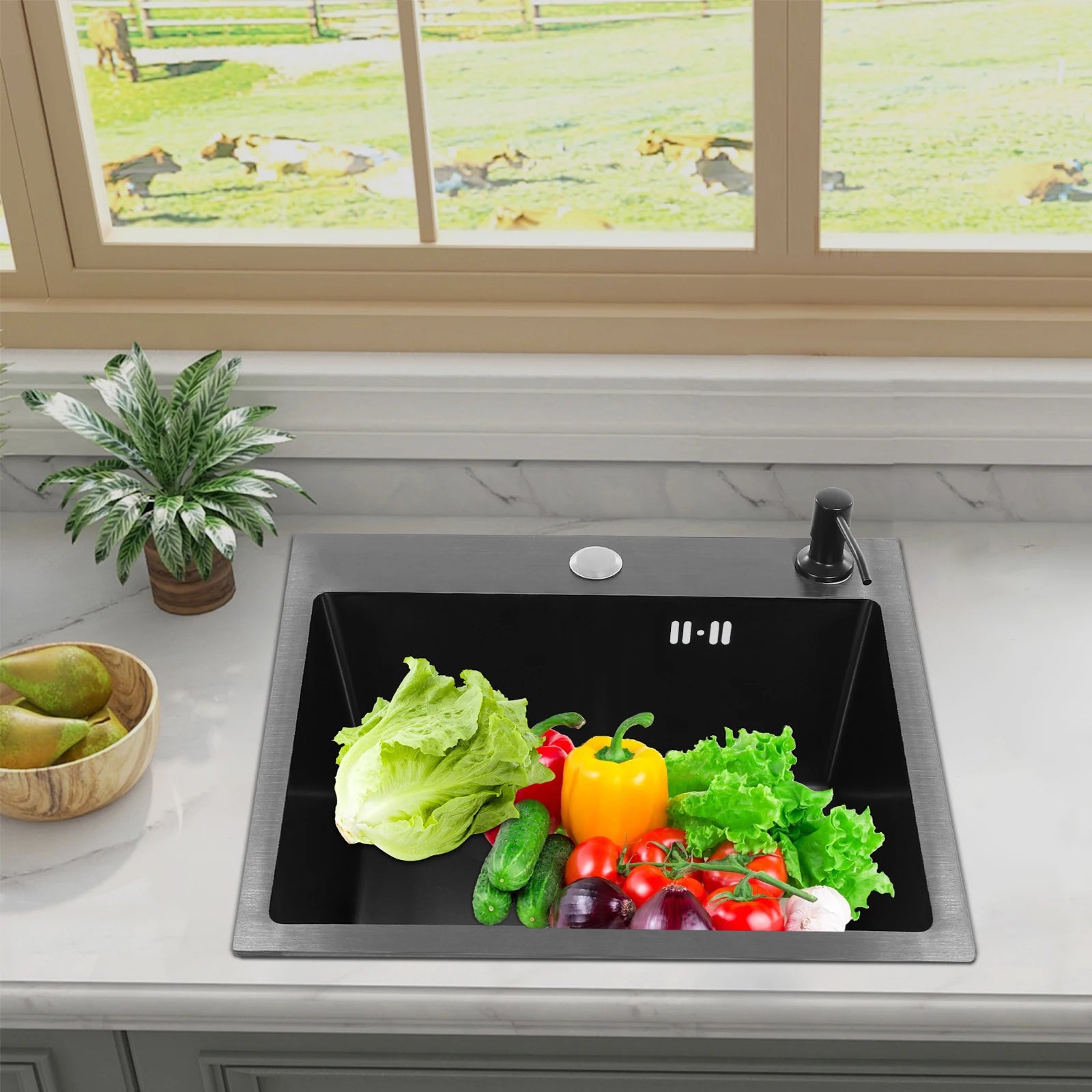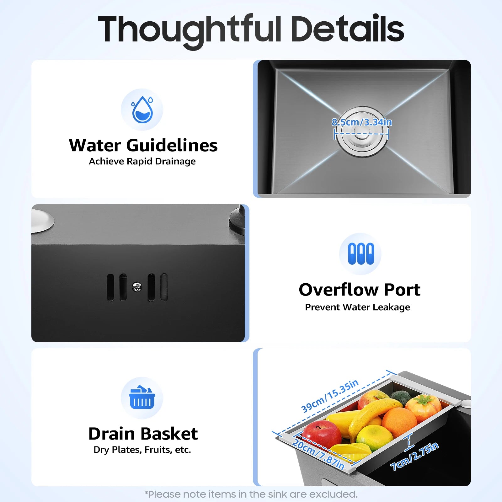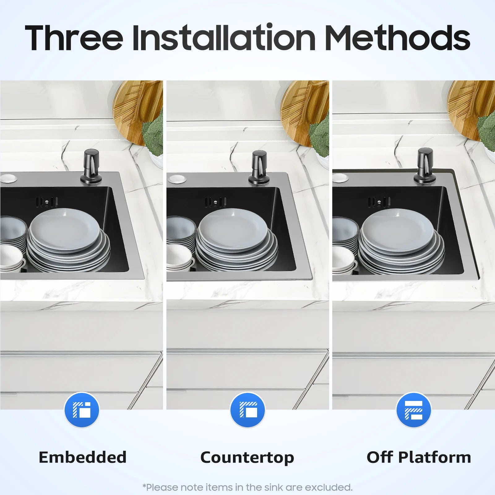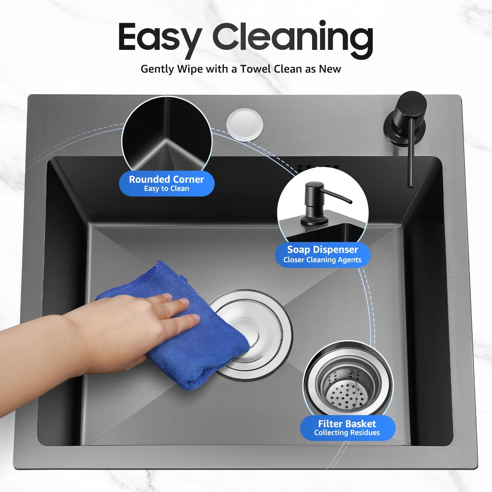 40 x 45 x 20 cm Küchenspüle-Set, Spüle aus Edelstahl 201 mit Abflusskorb und Seifenspender für Küchen, Badezimmer, Waschräume