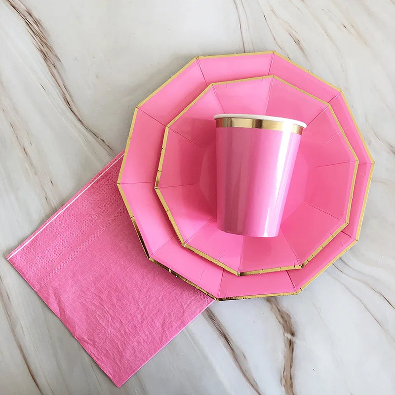 40pcs/set Yellow Green Pink Blue Paper Plates Cups Disposable Tableware Set for Wedding Birthday Party Baby Shower Supplies