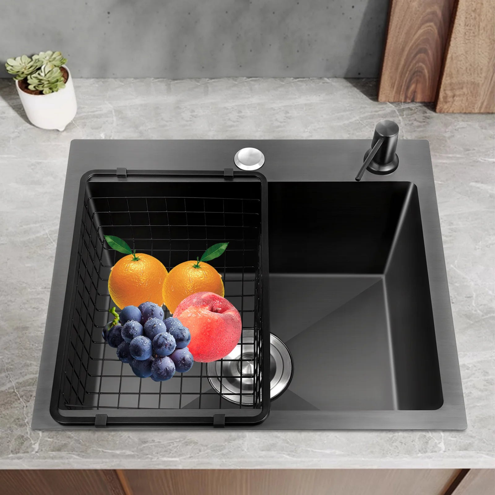 45 x 40 x 20 cm, Küchenspüle aus Edelstahl, Einzelschüssel-Spüle mit Sieb, Abflussrohr, Abflusskorb, für Küchenrestaurant, Schwarz