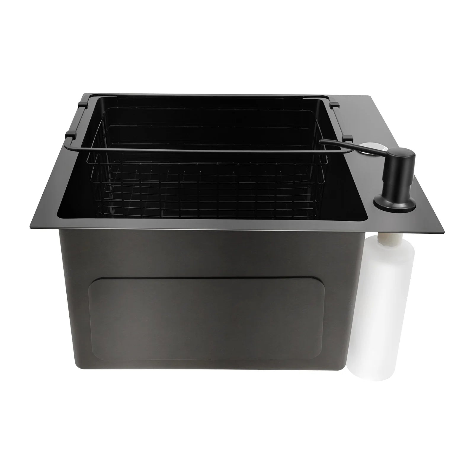 45 x 40 x 20 cm schwarzes Küchenspülbecken aus Edelstahl mit Seifenspender für Küchen, Badezimmer, Wäschezimmer