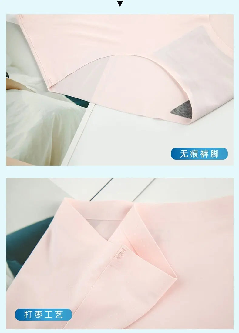 4PCS/Set Plus Size Women's Panties Solid Seamless Underwear Comfortable Breathable Ice Silk Sexy Lingerie Intimates Underpants