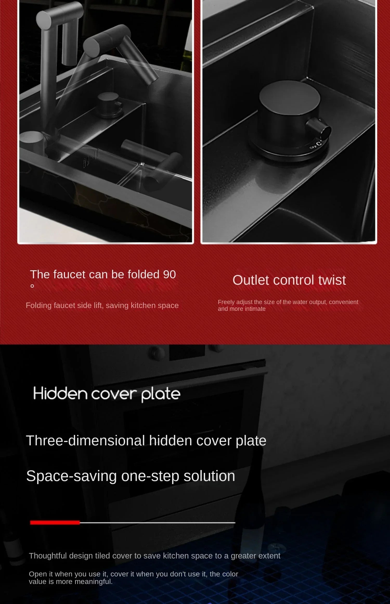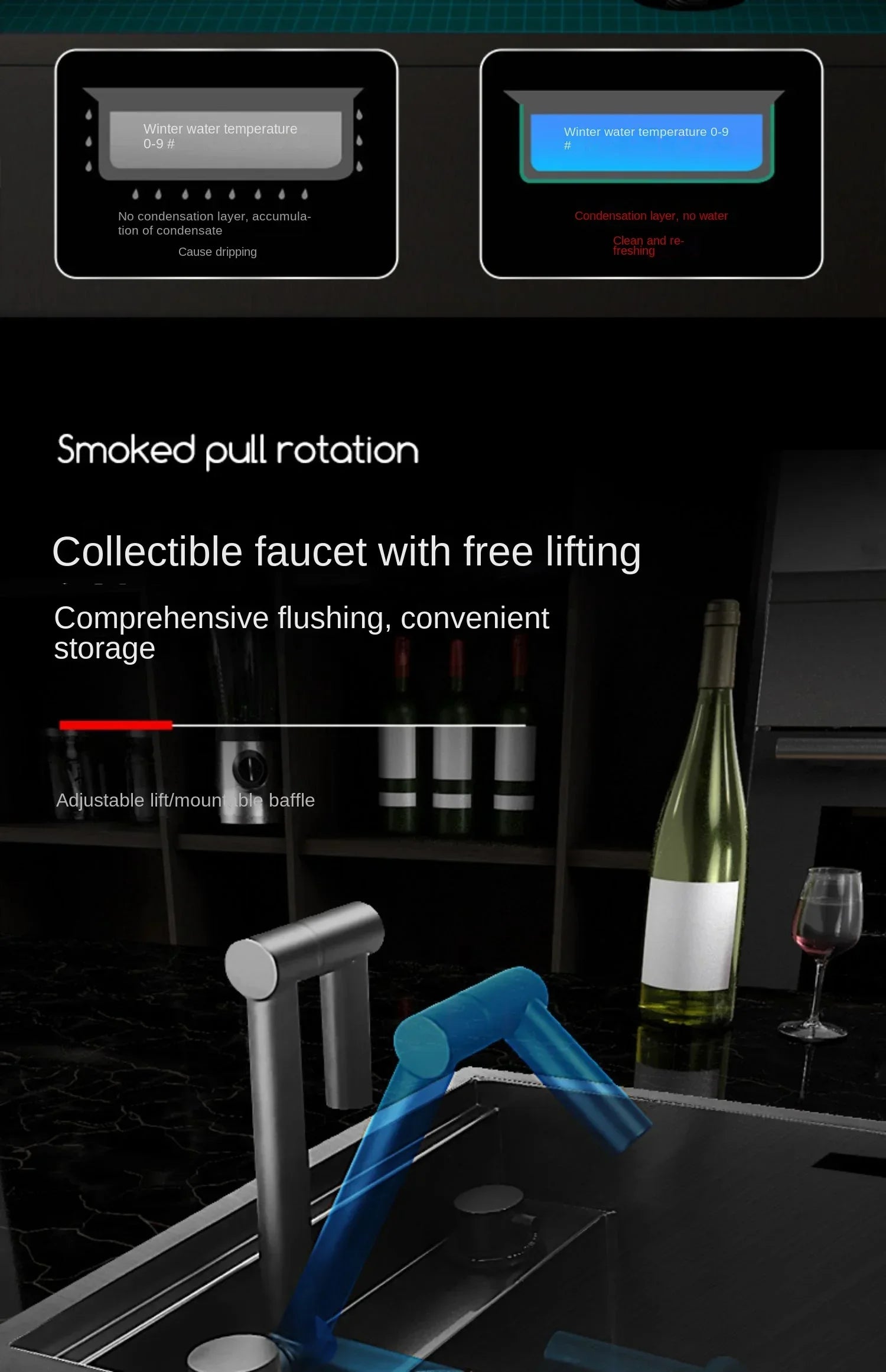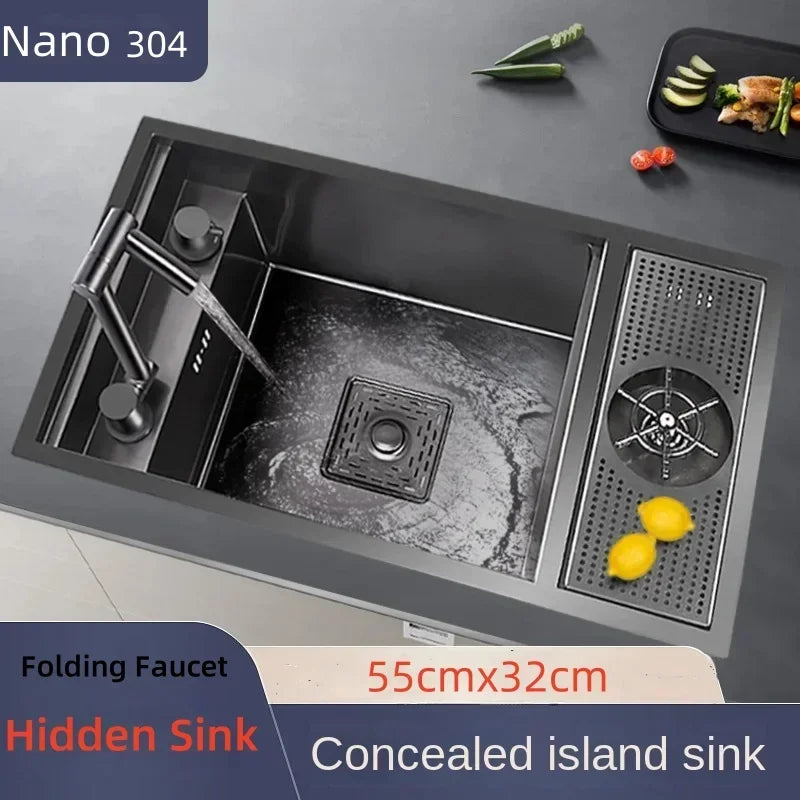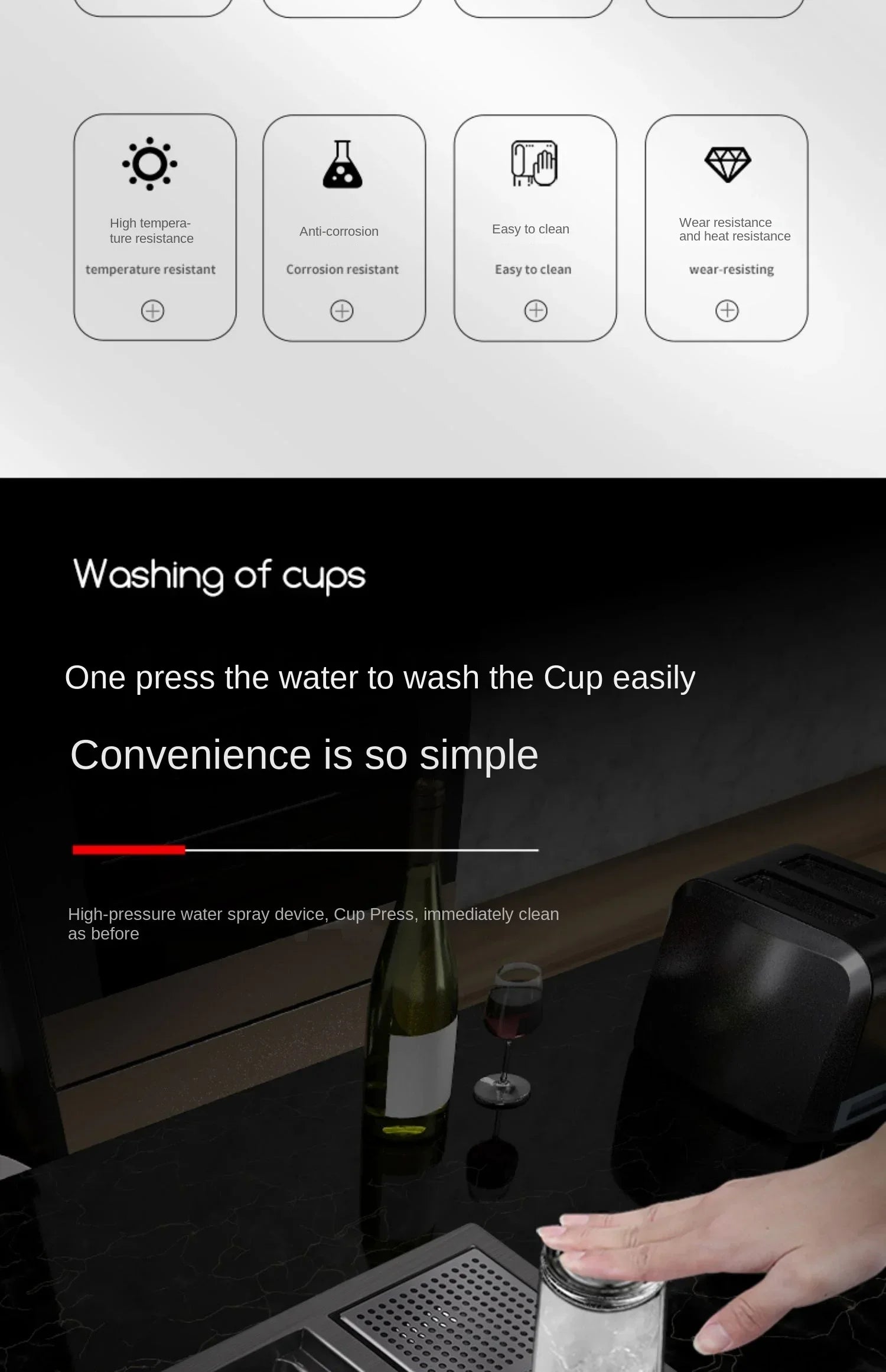 55 cm x 32 cm, 304 Nano-Edelstahl, versteckter Waschbecken-Klapphahn mit großem Einzelschlitz und Abdeckplatte, Bartheke, Tassenscheibe