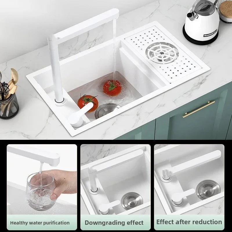 55 cm x 32 cm weißes, verstecktes Küchenspülbecken-Set, zusammenklappbares Wasserhahn-Abflussrohr, einklappbares Unterbauwaschbecken, kleines Waschbecken aus Edelstahl