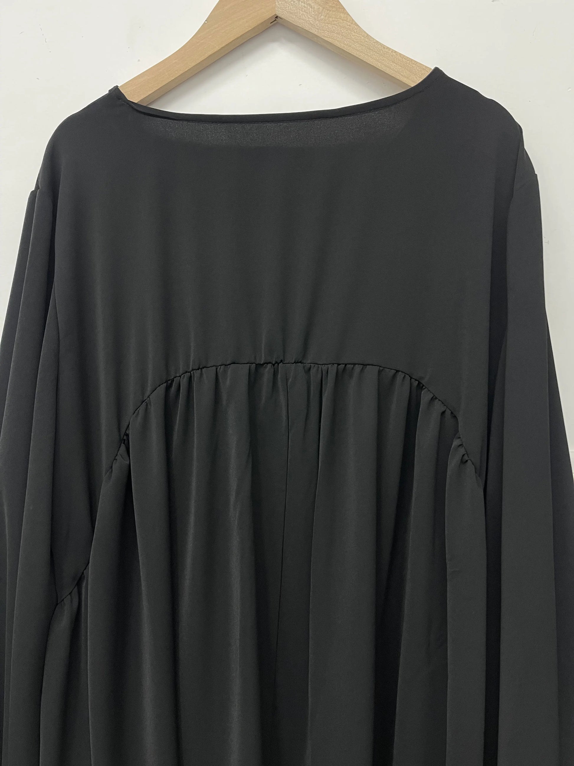 Abaya Ramadan Solid Bishop Sleeve Kebaya Kaftan, Elegant Crew Neck Maxi Length Dress, Islam Abayas For Women