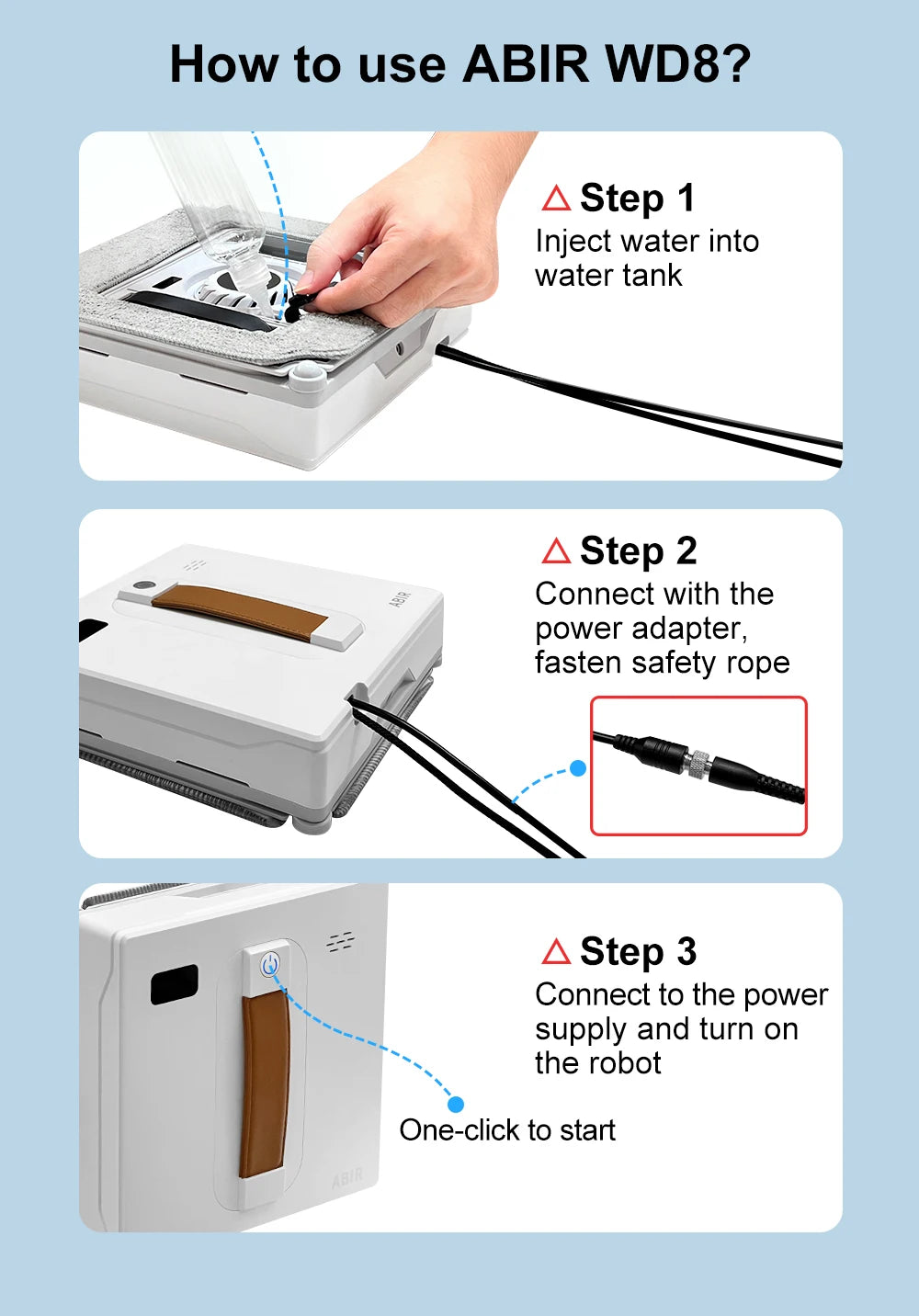 ABIR WD8 Robot Window Vacuum Cleaner,Dual Water Spray,Laser Sensor,Smart Home Glass Wall Wet Dry Cleaning ,APP&Remote Control