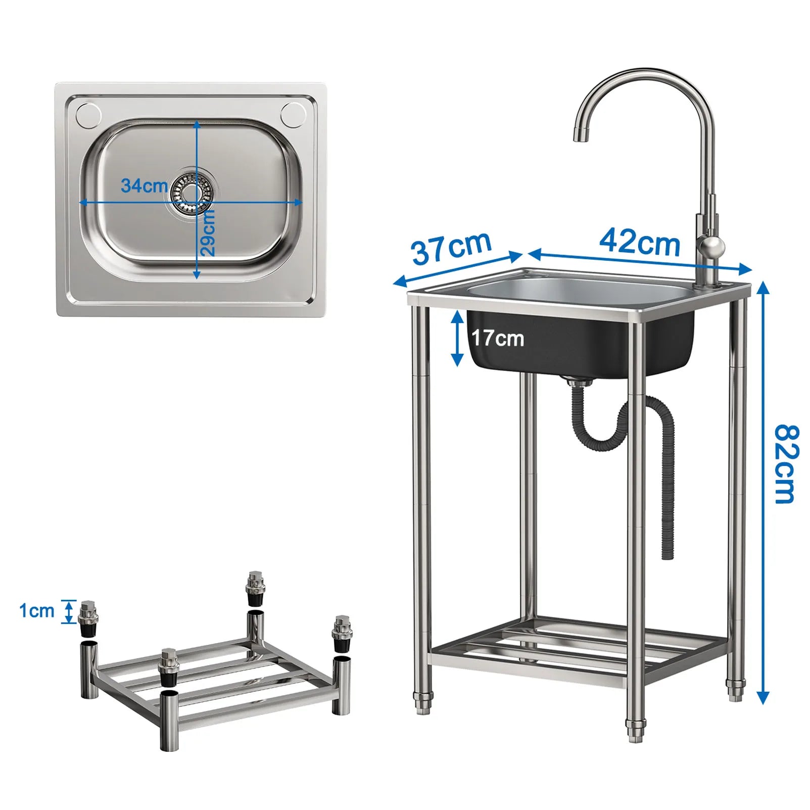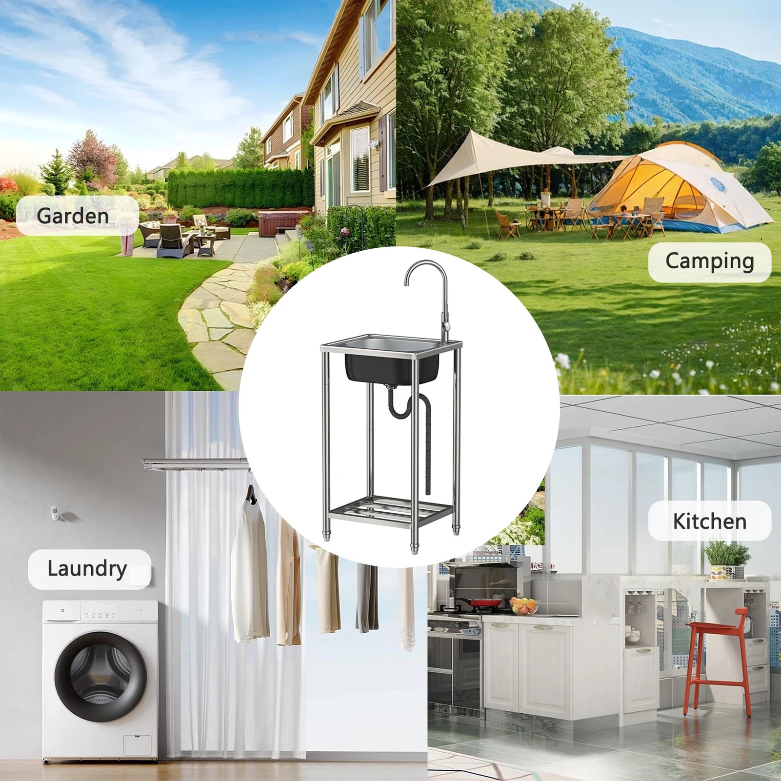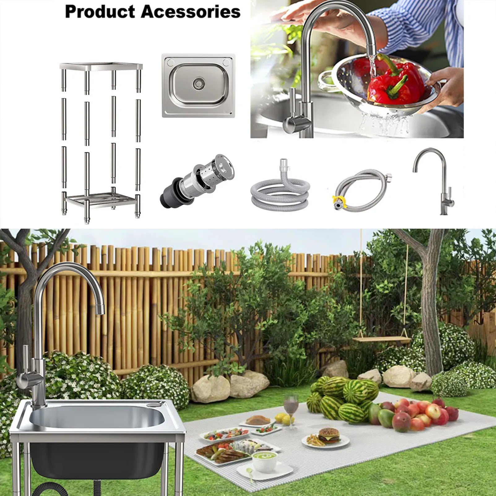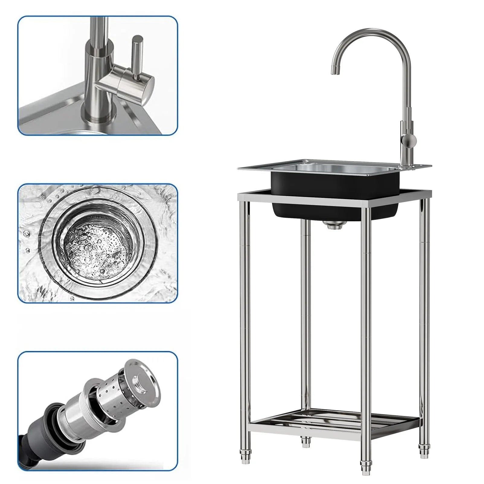 Abnehmbares multifunktionales Waschbecken, Waschbecken aus Edelstahl, Waschbecken mit einem Trog für gewerbliche Restaurantküchen