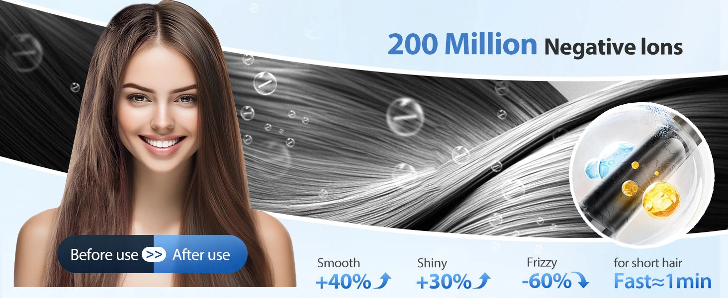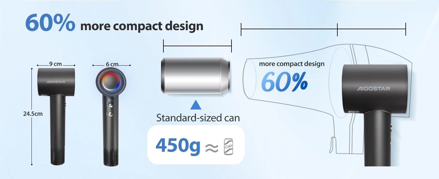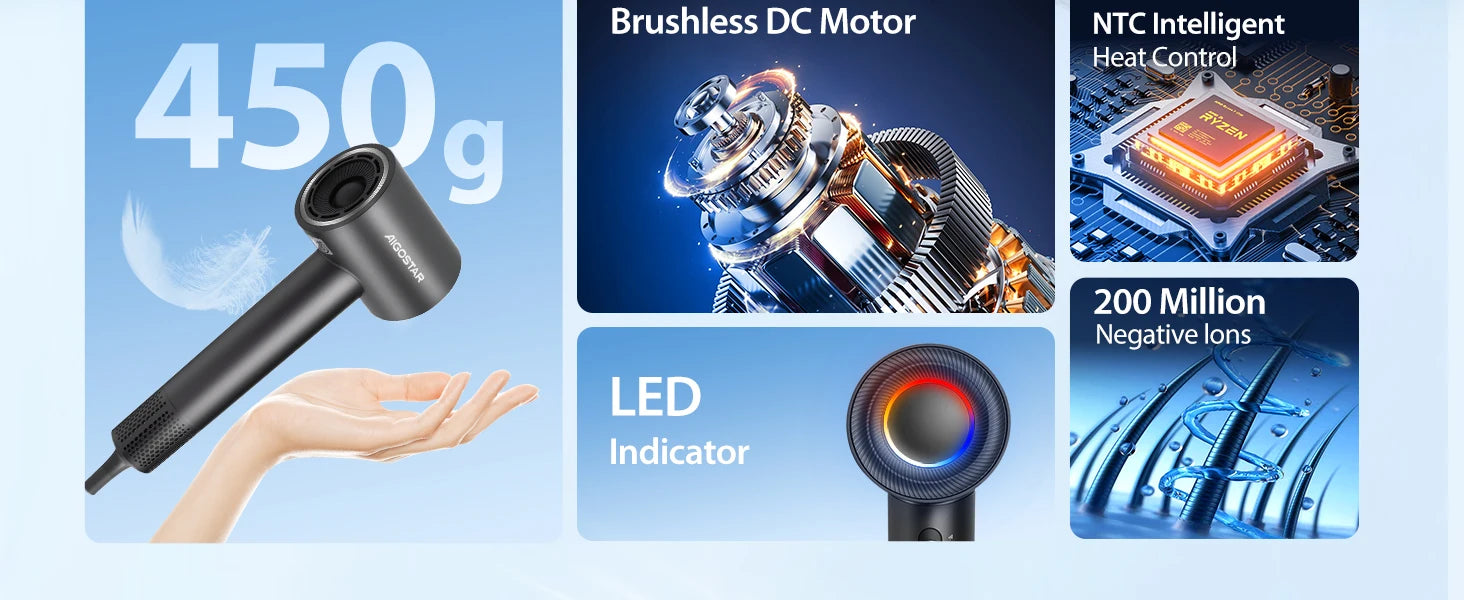 Aigostar Nora - Hair Dryer, 110,000 rpm High-Speed Hair Dryer with 200 Million Negative Ions, 55 dB Low-Noise Hair Dryer