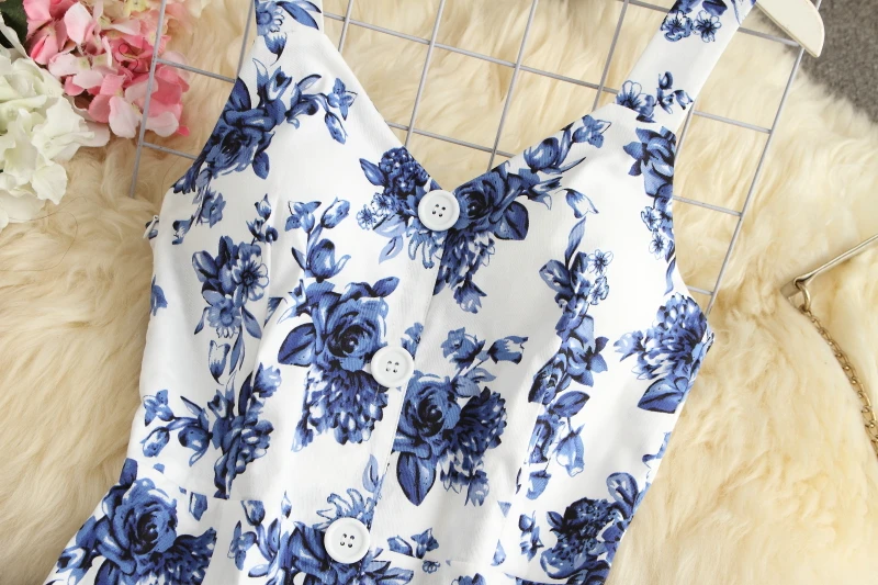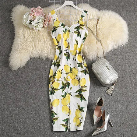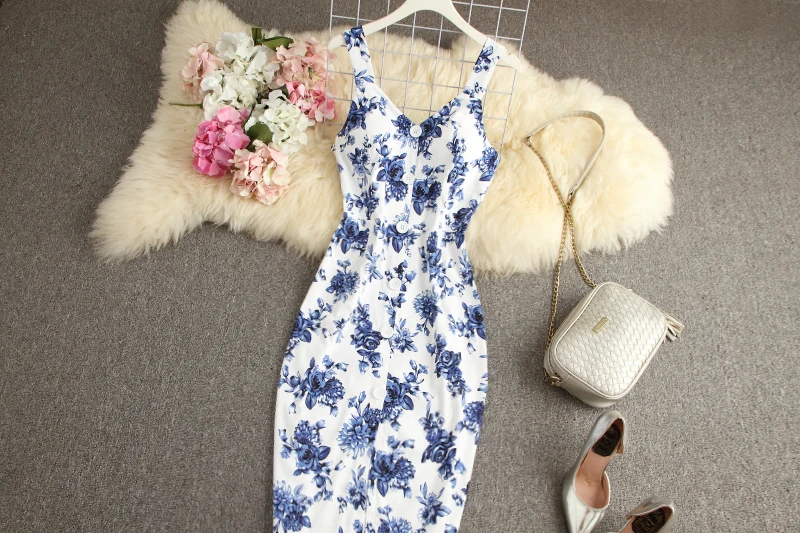 ALPHALMODA-Stretchy Tank-Kleid für Damen, schmales Baumwollkleid, einreihig, Blumendruck, elegant, Sommer, neu