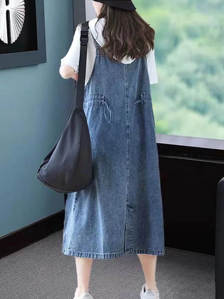 AmaxluluE 2023 Sommer Frauen Mode Übergroßen Ärmellose Denim Kleider Lose Lange Kleidung Klassische Luxus Casual Vintage Vestidos