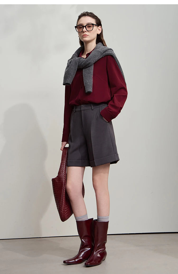 AMII Office Lady Shirt 2025 Autumn New Minimalism thick Long Sleeves Blouse Elastic Cotton Lapel Women's Clothing 12553079